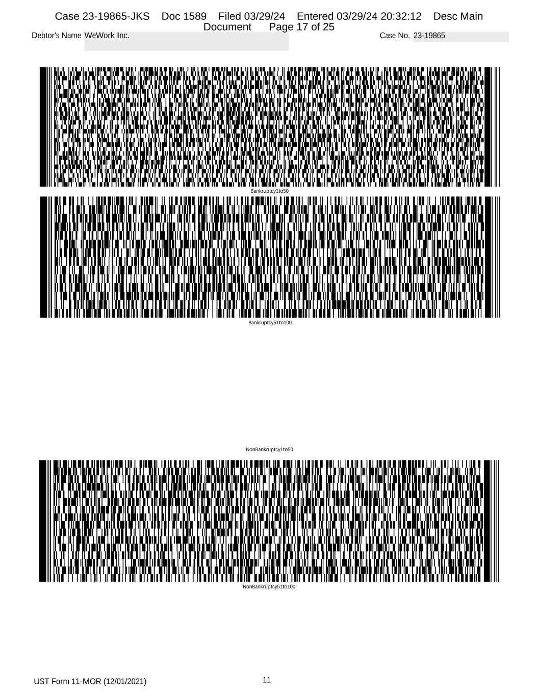 UST Form 11-MOR (12/01/2021) 11 Debtor's Name WeWork Inc. Case No. 23-19865 Bankruptcy51to100 NonBankruptcy1to50 NonBankruptcy51to100 Bankruptcy1to50 Case 23-19865-JKS Doc 1589 Filed 03/29/24 Entered 03/29/24 20:32:12 Desc Main Document Page 17 of 25