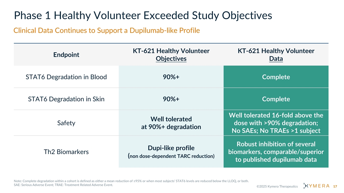 June 2, 2025 KT-621 / STAT6 Degrader Phase 1 Healthy Volunteer Results Revolutionizing Immunology with Oral Small Molecule Degrader Medicines