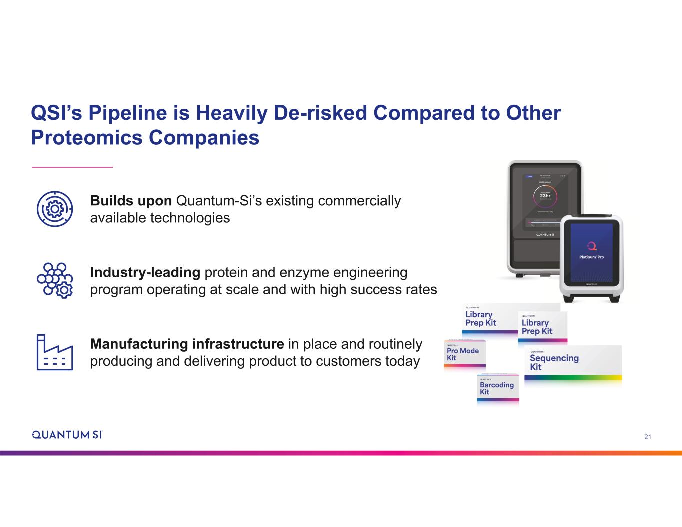 21 QSI’s Pipeline is Heavily De-risked Compared to Other Proteomics Companies Builds upon Quantum-Si’s existing commercially available technologies Industry-leading protein and enzyme engineering program operating at scale and with high success rates Manufacturing infrastructure in place and routinely producing and delivering product to customers today