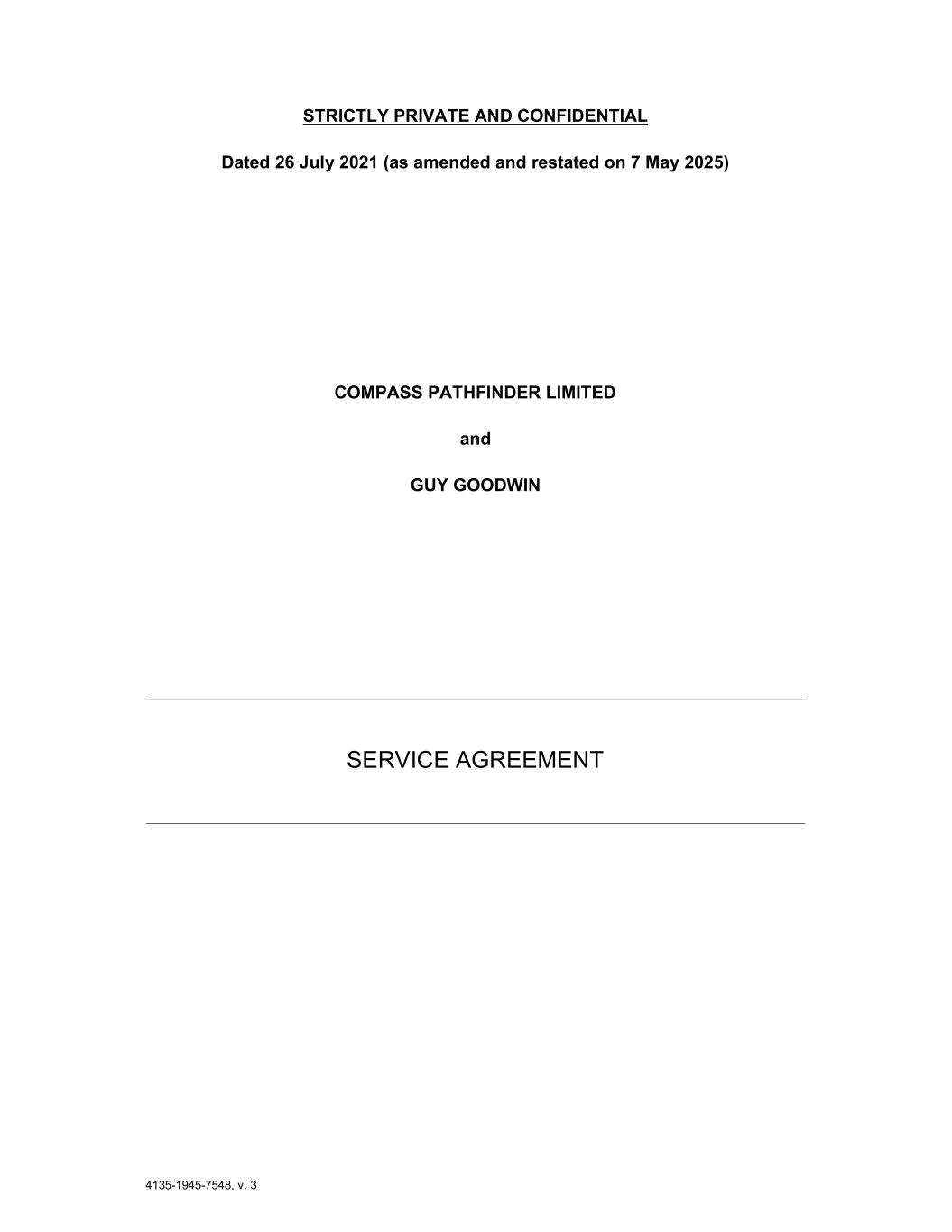 4135-1945-7548, v. 3  STRICTLY PRIVATE AND CONFIDENTIAL    Dated 26 July 2021 (as amended and restated on 7 May 2025)  COMPASS PATHFINDER LIMITED     and    GUY GOODWIN  SERVICE AGREEMENT