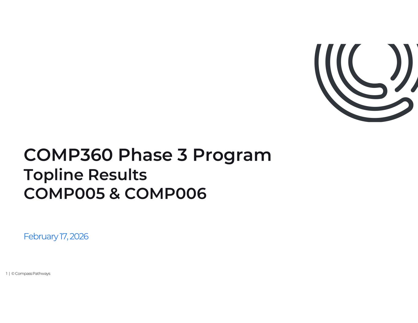 1 | © Compass Pathways COMP360 Phase 3 Program Topline Results COMP005 & COMP006 February 17, 2026
