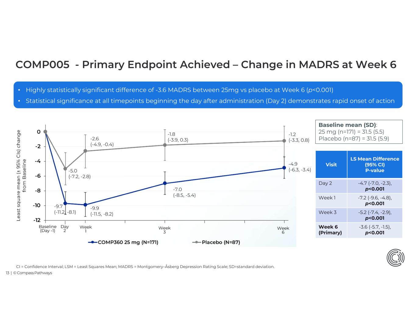 12 | © Compass Pathways COMP005 Efficacy Data