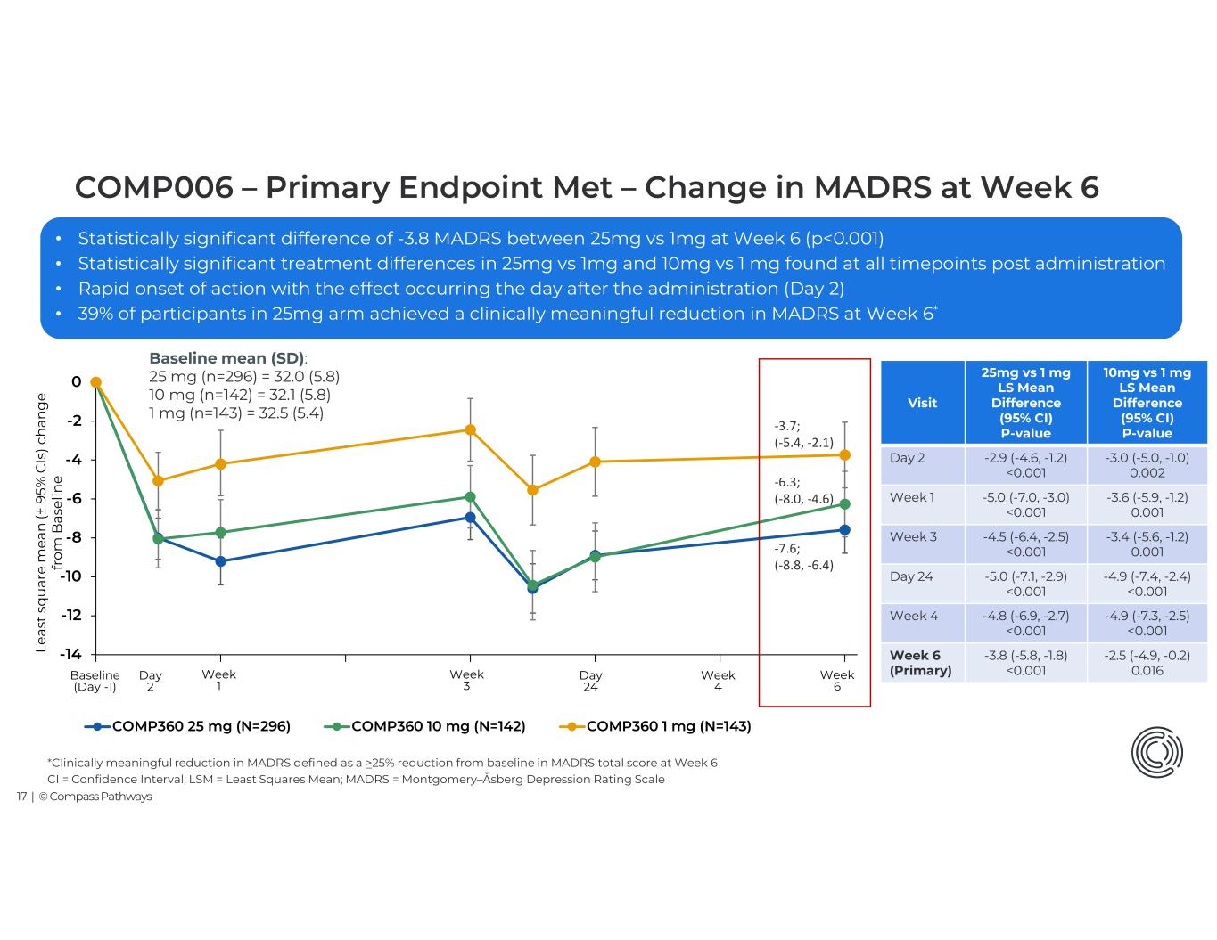 16 | © Compass Pathways COMP006 Efficacy Data