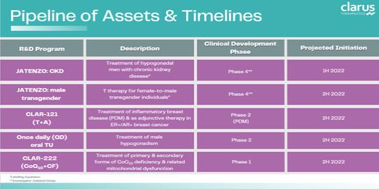 | • | Explore additional indications for JATENZO and consider business development opportunities to grow our pipeline and product portfolio. female-to-male |