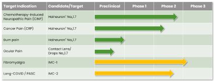 Peripheral neuropathic pain is an aspect of peripheral neuropathy, and there is an unmet medical need for treatment of patients who develop chemotherapy-induced neuropathic pain. Our lead product candidate, Halneuron®, is in late-stage clinical development for the treatment of chemotherapy-induced neuropathic pain (“CINP”). The active pharmaceutical ingredient is highly purified Tetrodotoxin (“TTX”), a potent sodium channel modulator found in puffer fish and several other marine animals. Halneuron® works as an analgesic by modulating the activity of Nav1.7, a key sodium channel involved in pain signal transmission. By reducing the activity of the Nav1.7 channel, Halneuron® has the potential to reduce pain associated with conditions involving neuropathic pain.