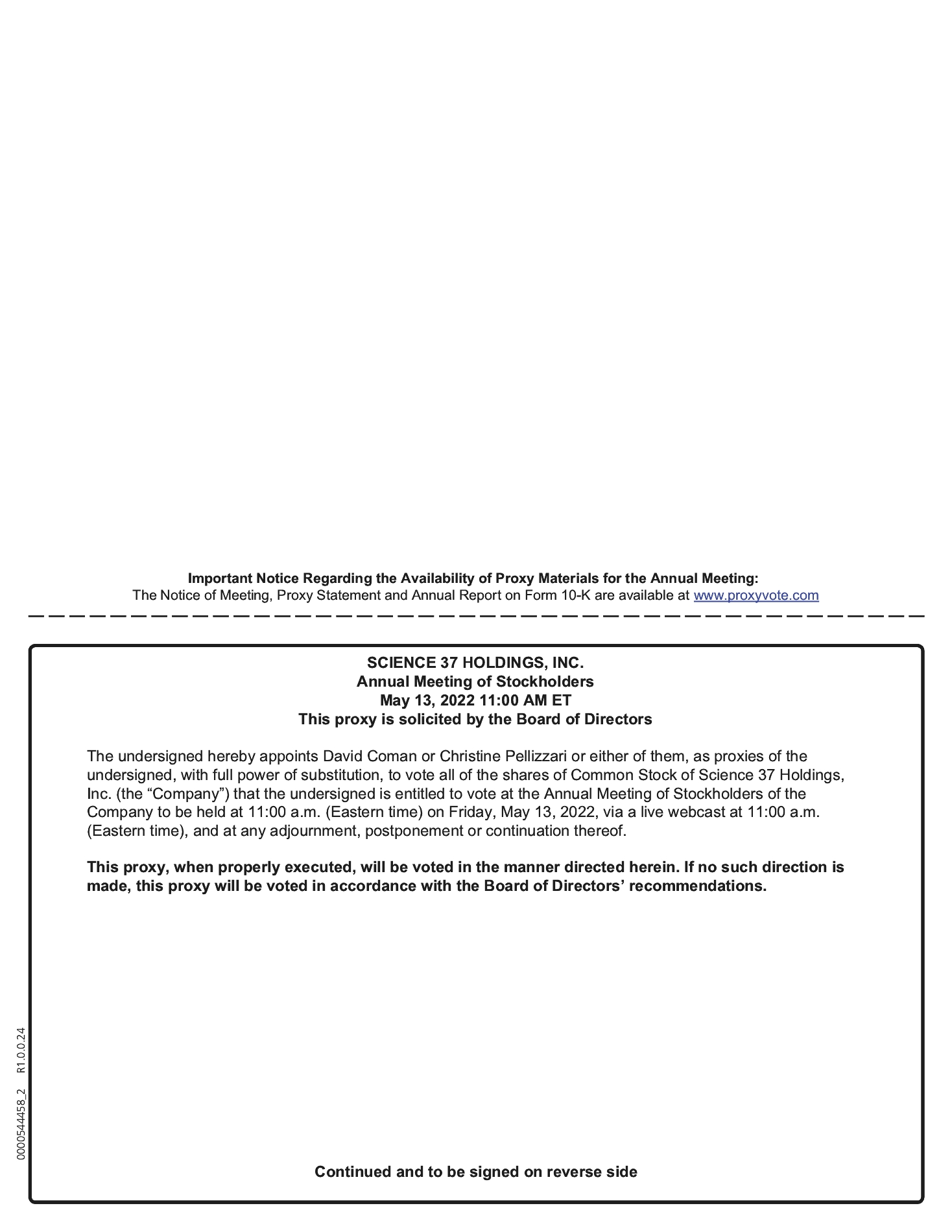 Director Nomination Agreement. LSAQ, the Sponsor, Legacy Science 37 and certain stockholders of Legacy Science 37 entered into a Director Nomination Agreement, dated October 6, 2021, pursuant to which each party agreed that our board of directors would initially upon the effectiveness of the Business Combination consist of at least seven members, one of which will be appointed by LSAQ pursuant to the Merger Agreement, and the remainder of which would be appointed by Legacy Science 37. Pursuant to the Director Nomination Agreement, our board is comprised of the following: David Coman, our Chief Executive Officer; one independent director designated by certain affiliates of Redmile Group, LLC, who is Robert Faulkner; one independent director designated by certain affiliates of Lux Capital Management, LLC, who is Adam Goulburn; one independent director to be designated by Pharmaceutical Product Development, LLC, who is Bhooshi DeSilva; and three additional independent directors, who are John W. Hubbard, Neil Tiwari and Emily Rollins. The Director Nomination Agreement provides, among other things, that from and after the closing of the Business Combination and until such time as it beneficially owns less than 10.0% of our then-issued and outstanding shares of common stock, each of the applicable LSAQ stockholders will be entitled to nominate one person for election as a director of our Board at the applicable meeting of our stockholders, and subject to our Board’s fiduciary duties, our Board will recommend these directors for stockholder approval. Additionally, under the agreement, in the event of the first vacancy that occurs on our Board, LifeSci Holdings, LLC shall be entitled to designate an independent director to fill such vacancy so long as it and its affiliates beneficially owns more than 1.0% of our then-issued and outstanding shares of common stock.