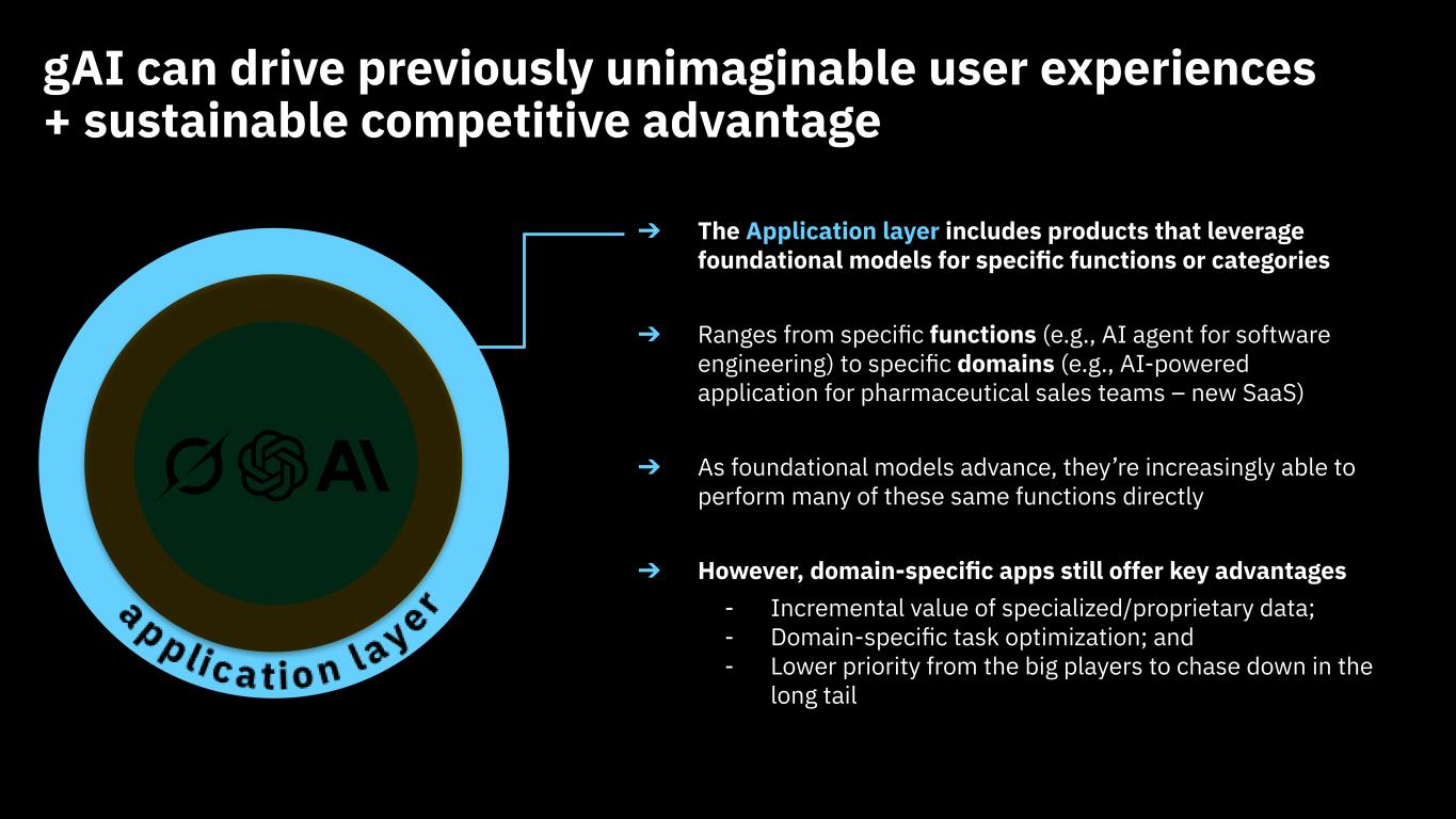 ➔ Ranges from specific functions (e.g., AI agent for software engineering) to specific domains (e.g., AI-powered application for pharmaceutical sales teams – new SaaS)
