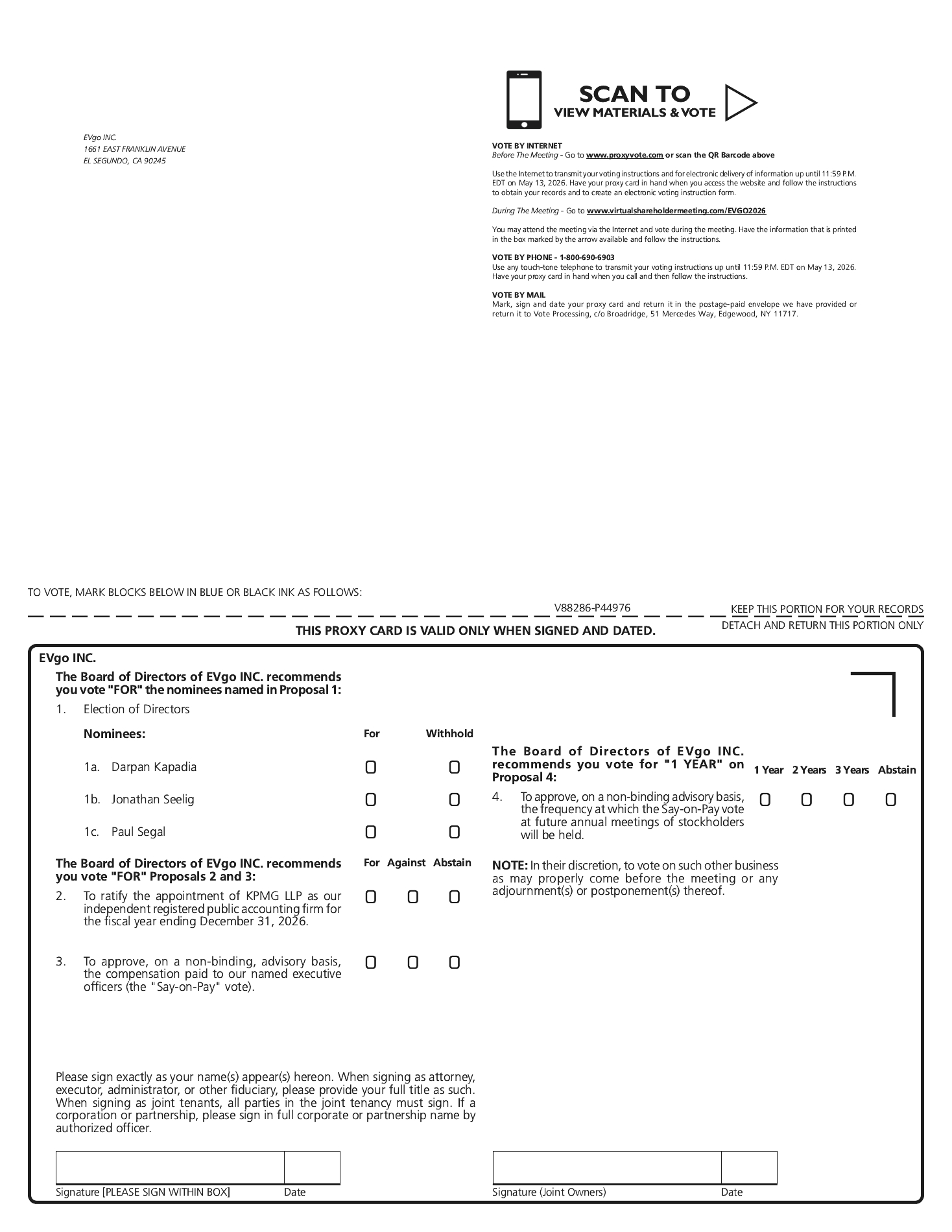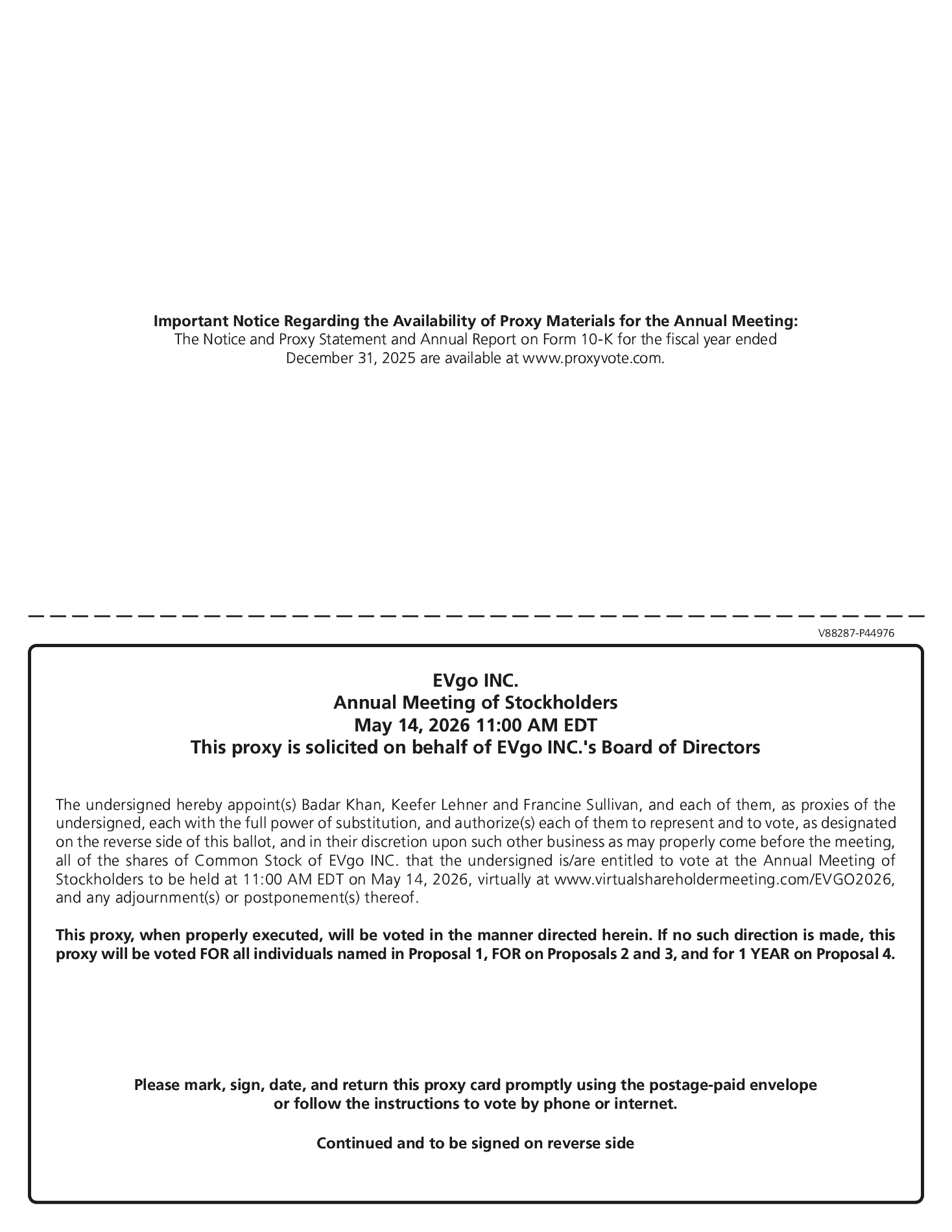 More information regarding the question-and-answer process, including the number and types of questions permitted, the time allotted for questions, and how questions will be recognized, answered, and disclosed, will be available in the meeting rules of conduct, which will be posted at www.virtualshareholdermeeting.com/EVGO2026 during the meeting.
