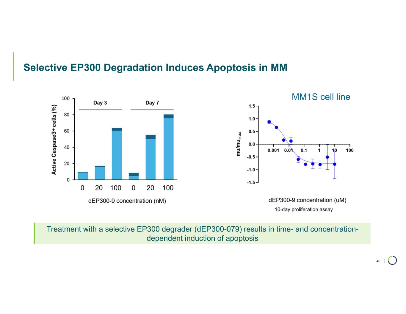 | Selective EP300 Degradation Induces Apoptosis in MM 46 Treatment with a selective EP300 degrader (dEP300-079) results in time- and concentration- dependent induction of apoptosis MM1S cell line