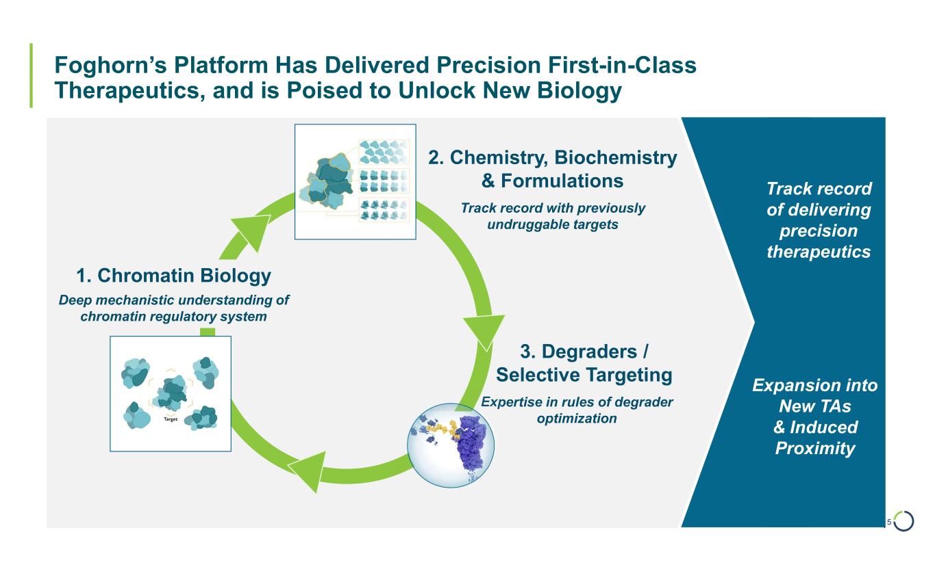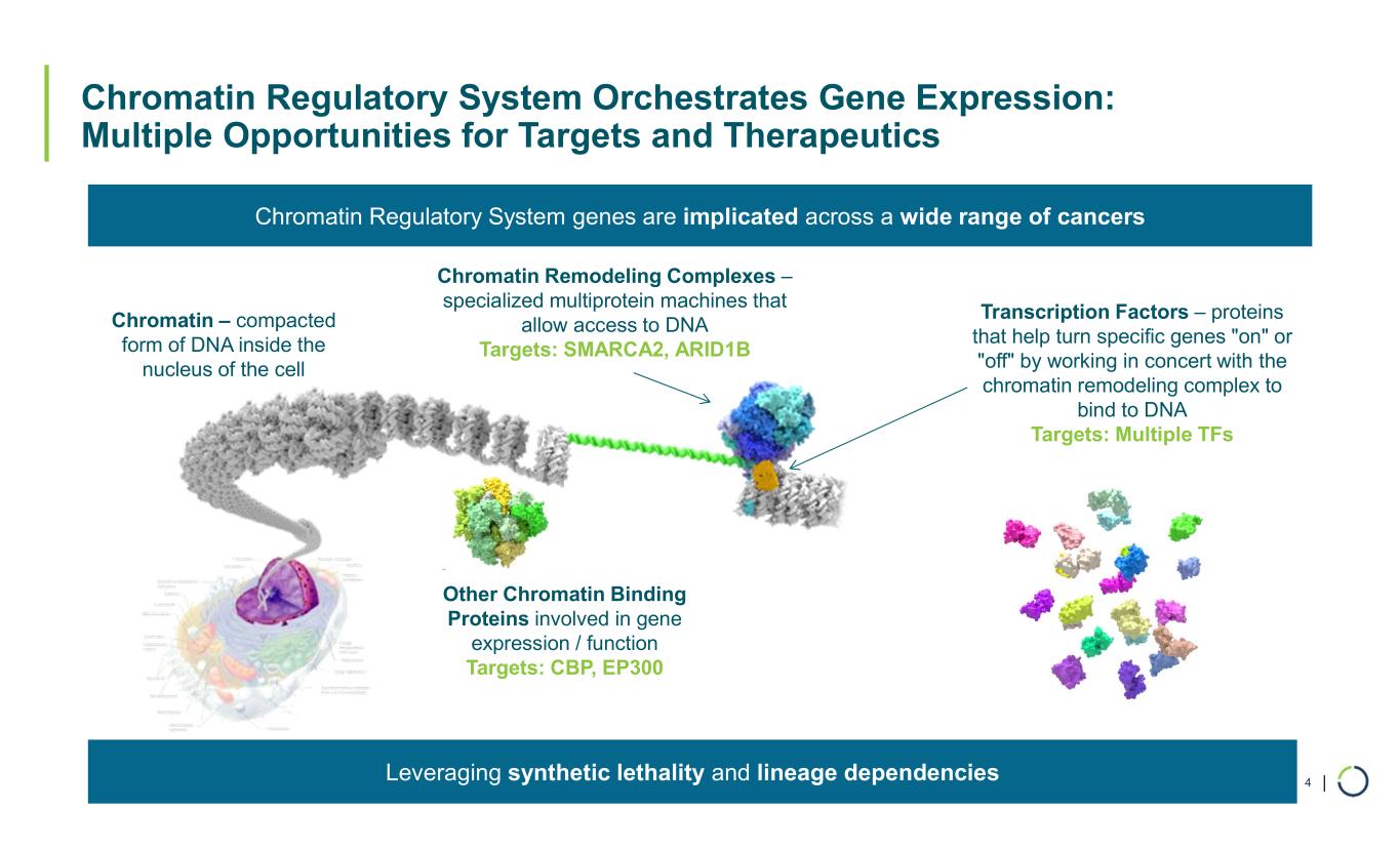 | Foghorn is a Leader in Chromatin Biology, Successfully Drugging Challenging Targets 3 Targeting chromatin regulation Implicated in up to 50% of all tumors Multi-billion $ Opportunities Unlocking selectivity of previously undruggable targets First-and-Best-in-Class Approaches Innovating selective protein degradation with capabilities in induced proximity Selective Target Engagement Leveraging a proven drug development platform with expansive potential Strategic Partnership: Multiple Programs
