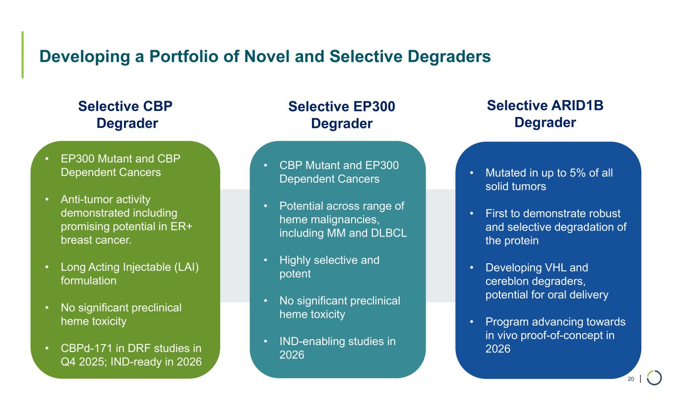 Degrader Programs • Selective CBP Degrader • Selective EP300 Degrader • Selective ARID1B Degrader 19