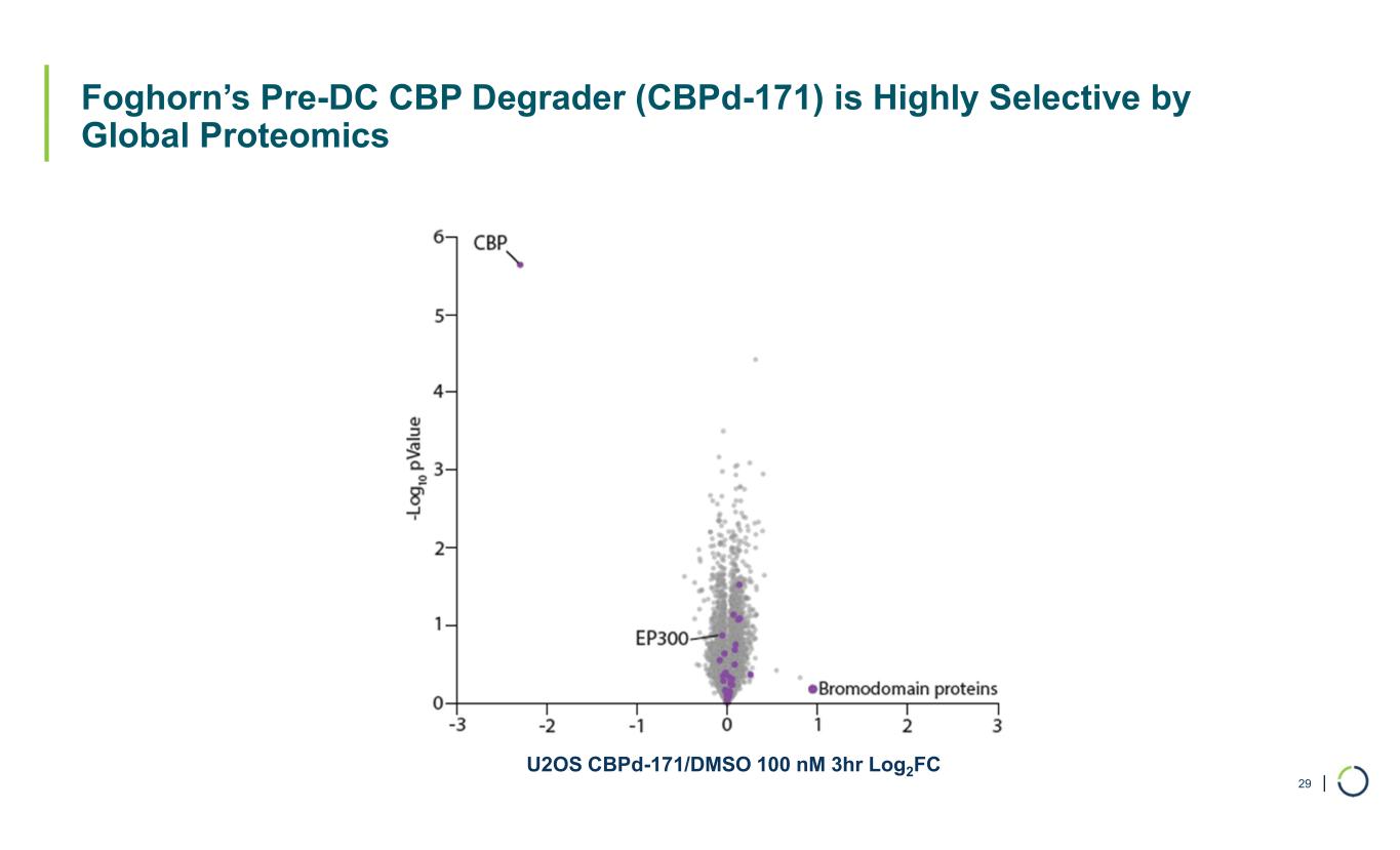 | Foghorn’s Pre-DC CBP Degrader (CBPd-171) is Highly Selective by Global Proteomics 29 U2OS CBPd-171/DMSO 100 nM 3hr Log2FC