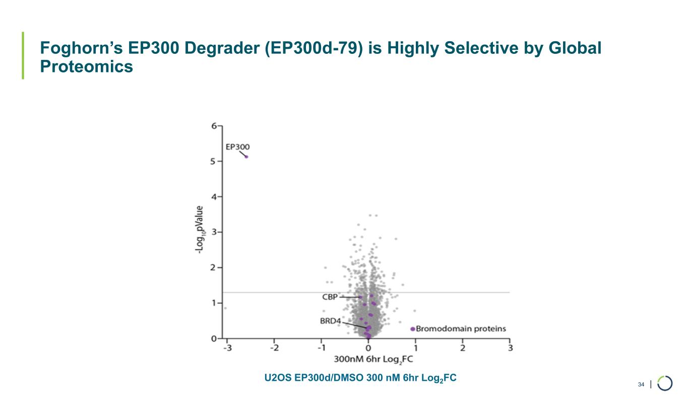 | Foghorn’s EP300 Degrader (EP300d-79) is Highly Selective by Global Proteomics 34 U2OS EP300d/DMSO 300 nM 6hr Log2FC
