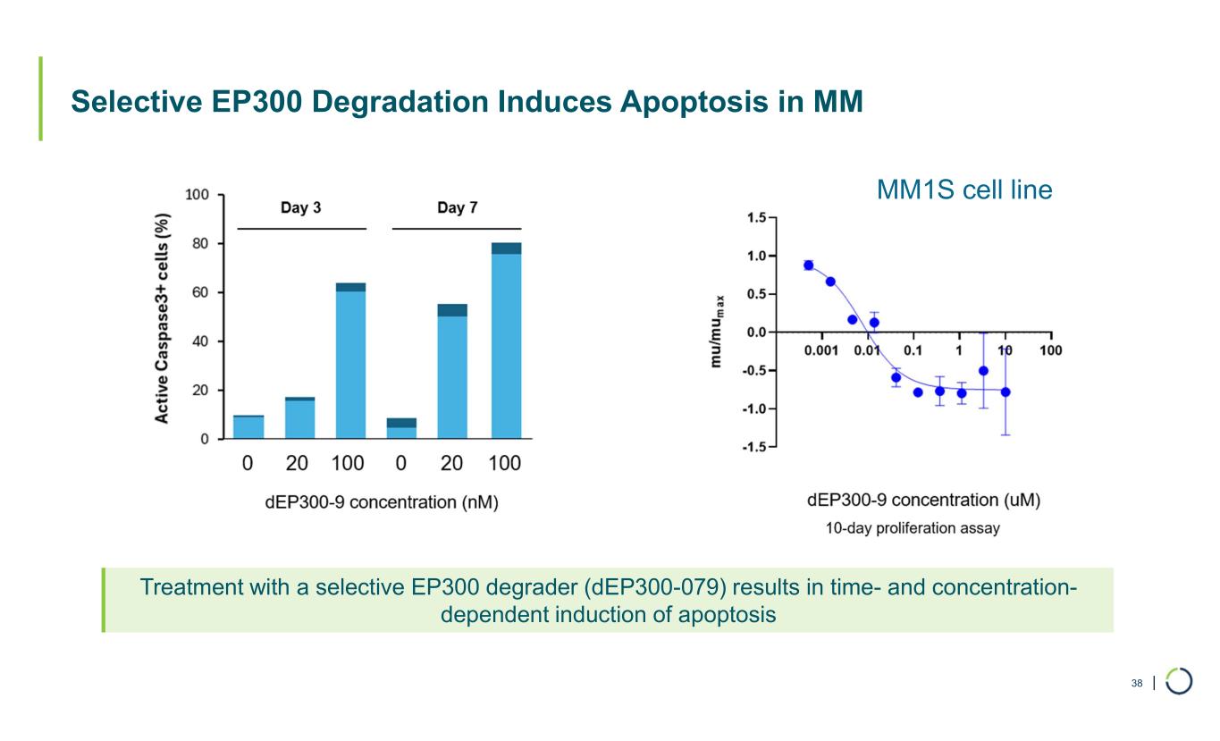 | Selective EP300 Degradation Induces Apoptosis in MM 38 Treatment with a selective EP300 degrader (dEP300-079) results in time- and concentration- dependent induction of apoptosis MM1S cell line
