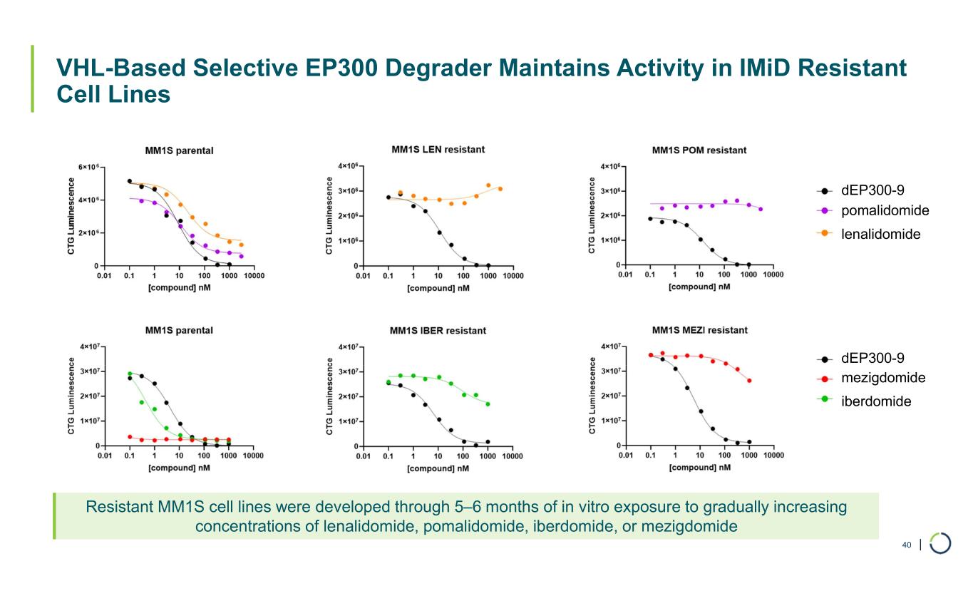 | VHL-Based Selective EP300 Degrader Maintains Activity in IMiD Resistant Cell Lines 40 Resistant MM1S cell lines were developed through 5–6 months of in vitro exposure to gradually increasing concentrations of lenalidomide, pomalidomide, iberdomide, or mezigdomide dEP300-9 dEP300-9 pomalidomide lenalidomide mezigdomide iberdomide