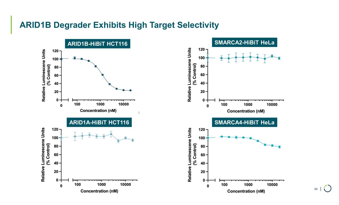| ARID1B Degrader Exhibits High Target Selectivity 50 ARID1B-HiBiT HCT116 ARID1A-HiBiT HCT116 SMARCA2-HiBiT HeLa SMARCA4-HiBiT HeLa