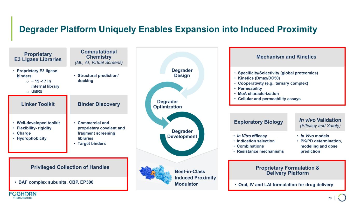 | Degrader Design Degrader Optimization Degrader Development Best-in-Class Induced Proximity Modulator • Structural prediction/ docking • Well-developed toolkit • Flexibility- rigidity • Charge • Hydrophobicity • Commercial and proprietary covalent and fragment screening libraries • Target binders • Oral, IV and LAI formulation for drug delivery Computational Chemistry (ML, AI, Virtual Screens) Proprietary E3 Ligase Libraries Binder DiscoveryLinker Toolkit Mechanism and Kinetics Exploratory Biology In vivo Validation (Efficacy and Safety) Proprietary Formulation & Delivery Platform • BAF complex subunits, CBP, EP300 Privileged Collection of Handles Degrader Platform Uniquely Enables Expansion into Induced Proximity 78 • Proprietary E3 ligase binders o ~ 15 -17 in internal library o UBR5 • Specificity/Selectivity (global proteomics) • Kinetics (Dmax/DC50) • Cooperativity (e.g., ternary complex) • Permeability • MoA characterization • Cellular and permeability assays • In Vitro efficacy • Indication selection • Combinations • Resistance mechanisms • In Vivo models • PK/PD determination, modeling and dose prediction