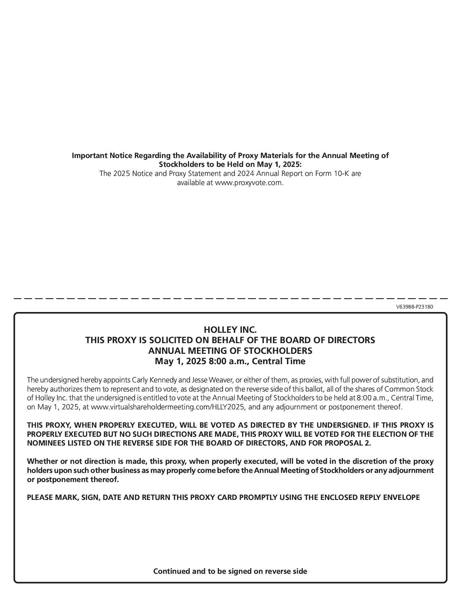 In connection with his appointment as President and Chief Executive Officer of Holley, Mr. Stevenson received an inducement award on June 6, 2023, in the form of (1) 1,000,000 RSUs, which vest on each of the first four anniversaries of the grant date, subject to Mr. Stevenson’s continuous employment through such date and (2) 1,520,000 PSUs, which vest upon the achievement of certain stock price metrics, subject to Mr. Stevenson’s continued employment with Holley.