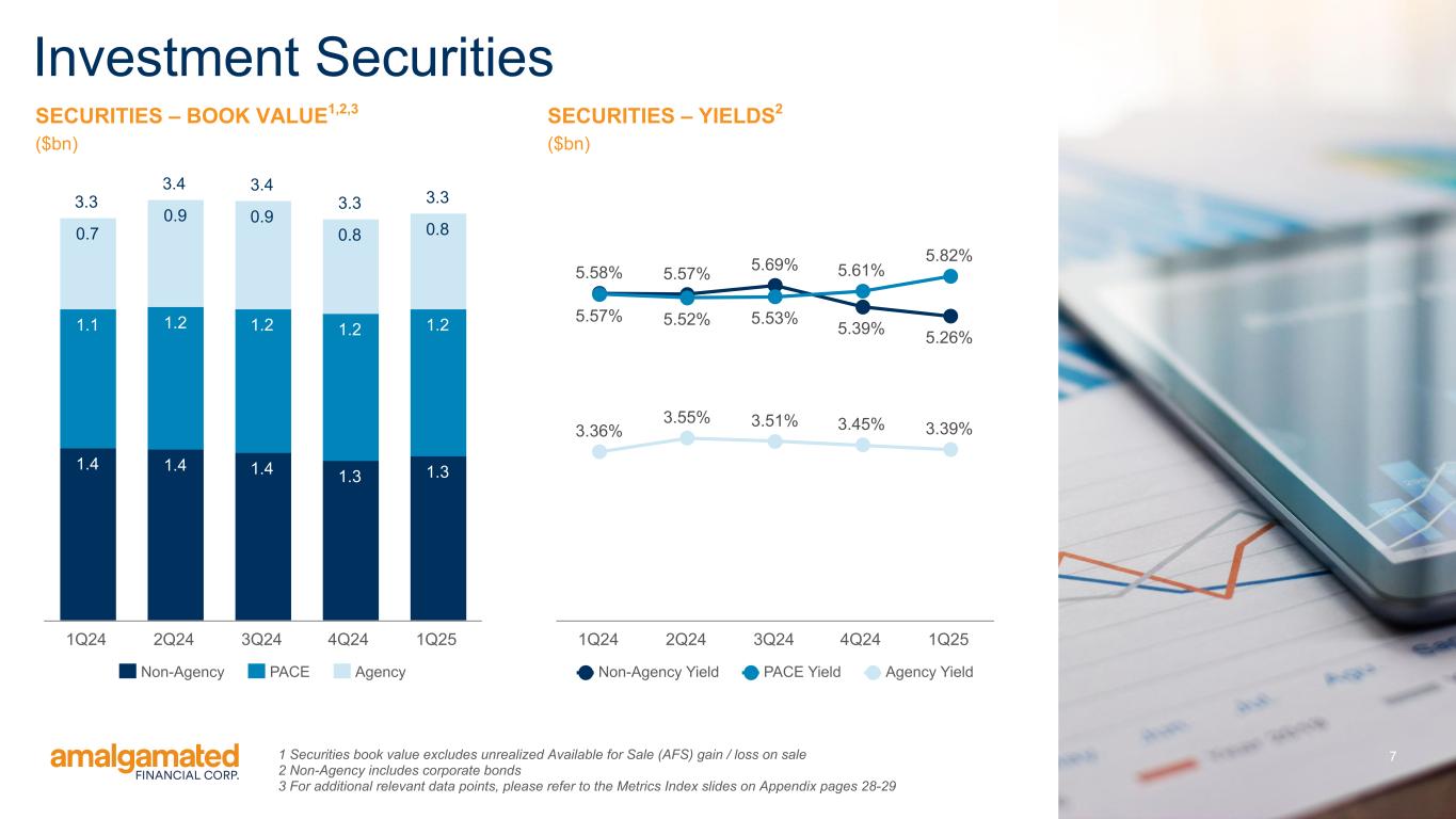 6 Not-for-Profit Deposits TOTAL NOT-FOR-PROFIT DEPOSITS ($bn) 1.06 1.30 1.26 1.27 1.37 14.5% 16.8% 16.1% 17.8% 18.1% % of Total Core Deposits Not-for-Profit Deposits 1Q24 2Q24 3Q24 4Q24 1Q25 NOT-FOR-PROFIT CUSTOMERS SOCIAL/PHILANTHROPY CUSTOMERS (not included in chart) • Tax exempt (501c3) institutions intended to provide a service to their members and serve the mission of their specific organization • Includes advocacy organizations, social service providers, organizers and consultants, social clubs, civic leagues, welfare groups • Mission-based foundations and charitable organizations that serve as a financial intermediary for a philanthropic donor, often with a primary focus on driving positive societal change and serving the common good • Some of these customers also hold 501c3 tax exempt status, but maintain substantially different risk profiles than our NFP segment