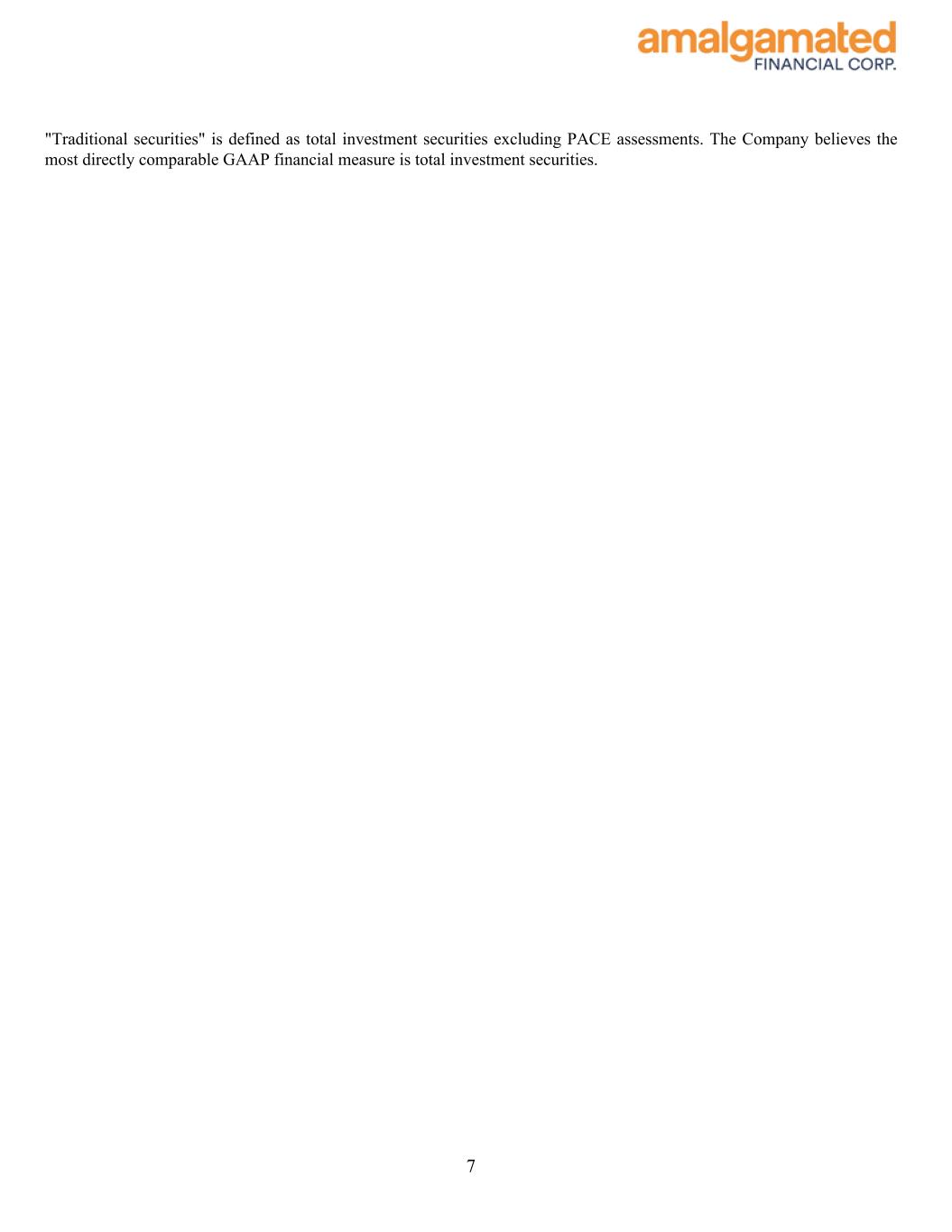 "Traditional securities" is defined as total investment securities excluding PACE assessments. The Company believes the most directly comparable GAAP financial measure is total investment securities. 7