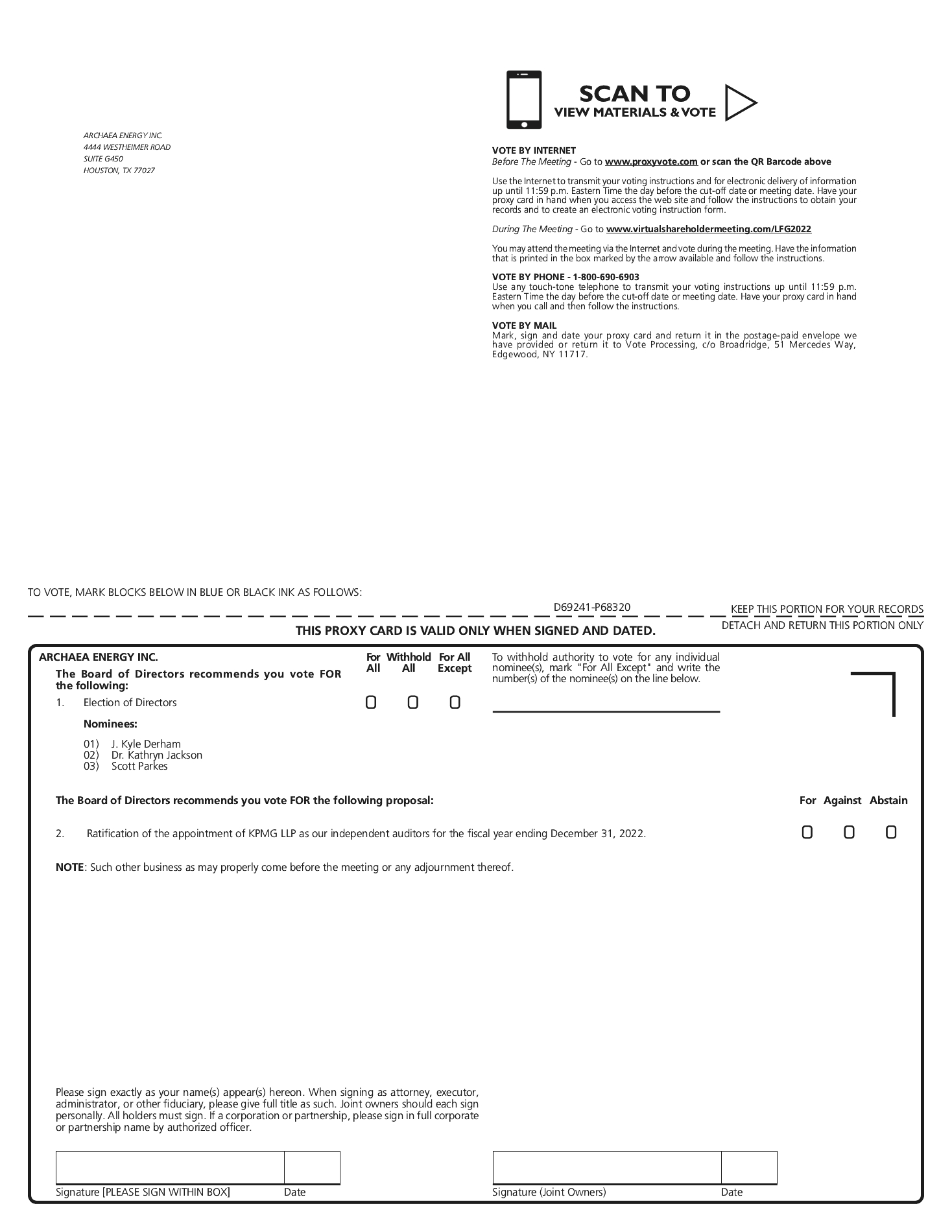Mr. Stork is Chief Financial Officer and a director of Noble. Additionally, Richard Walton, President of Archaea, is also Chief Executive