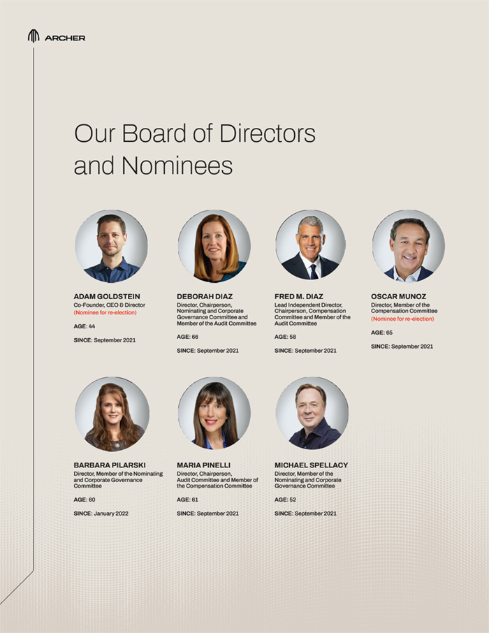 | 1. | Elect certain directors of Archer Aviation Inc., each to serve a three-year term expiring at the 2027 annual meeting of stockholders and until such director’s successor is duly elected and qualified. |