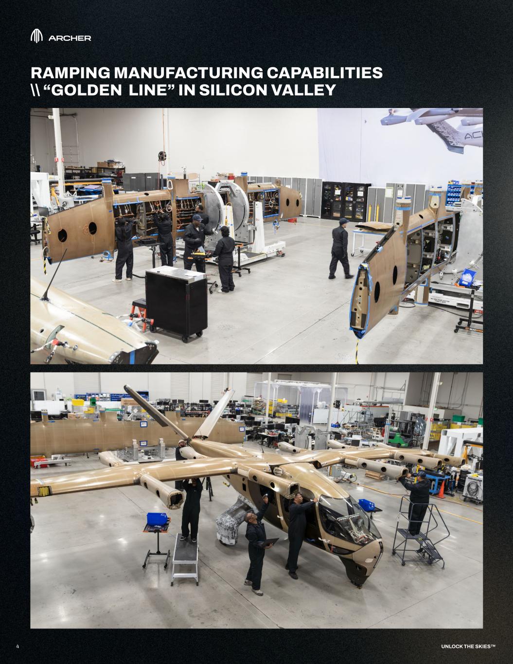 RAMPING MANUFACTURING CAPABILITIES, PROGRESSING FAA PRODUCTION CERTIFICATE We continue to be focused in the near term on ramping our production capabilities to achieve a rate of 50 aircraft per year across our ~700,000 square feet of manufacturing and test facilities. As previously discussed, the Midnight aircraft we build during this new product introduction phase will be used in certification and early commercial deployments. We currently have six Midnight aircraft in various stages of production, three of which are in final assembly at our Covington, Georgia and Silicon Valley facilities. In parallel, the FAA continued conducting reviews and inspections of our manufacturing operations as part of our production certificate efforts. SILICON VALLEY, CALIFORNIA | Golden Line During this new product introduction phase, we are utilizing a “golden manufacturing line” approach at one of our Silicon Valley facilities for final assembly of our early Midnight builds. COVINGTON, GEORGIA | High-Volume Manufacturing We are using the lessons from the final assembly activities at our “golden manufacturing line” in Silicon Valley to inform the design and ramp of our high-volume manufacturing operations in Georgia. In the early months of operations at this facility, we have been focused on our manufacturing processes related to Midnight’s fuselage. 3 UNLOCK THE SKIES™