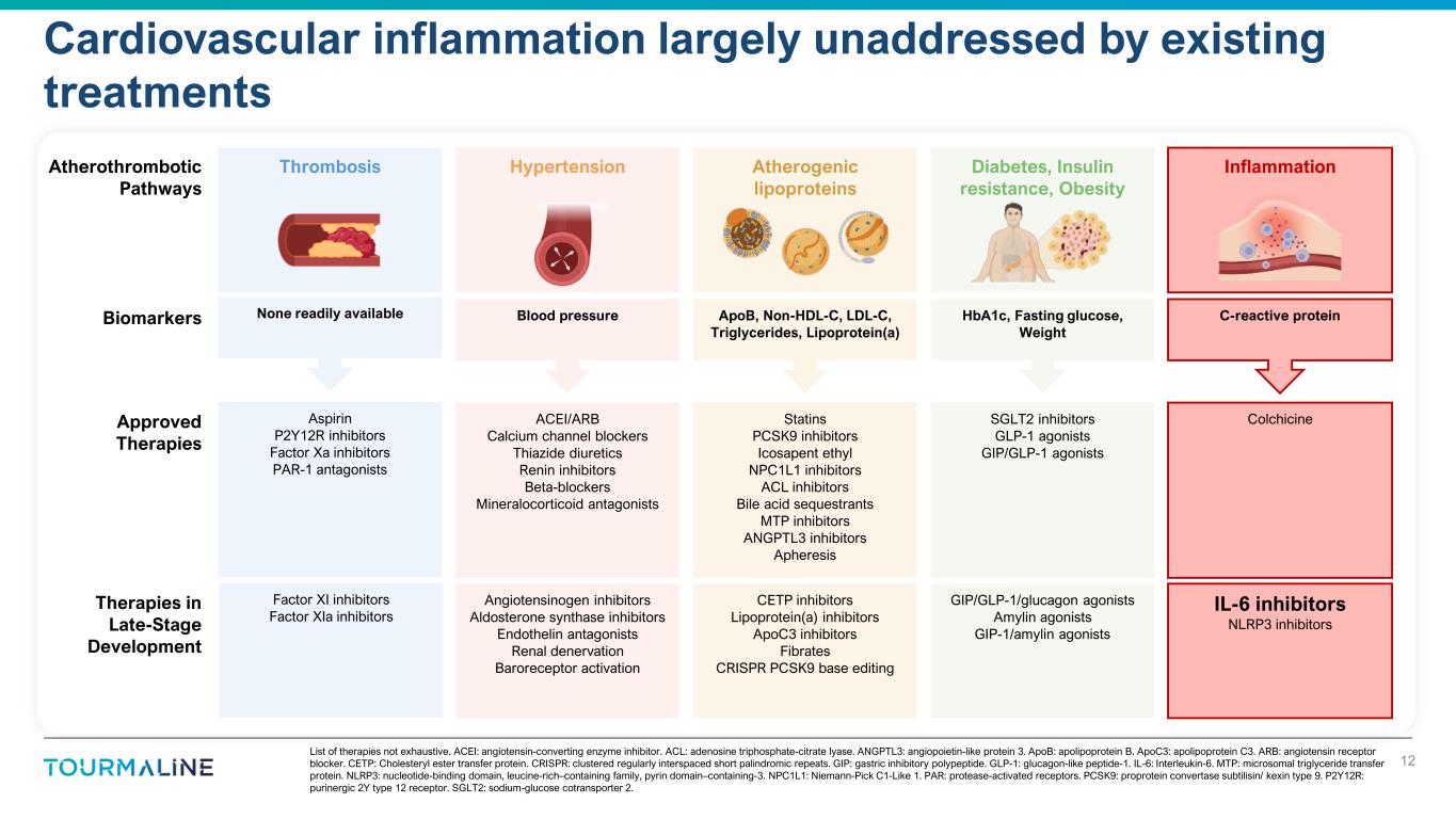 World-class Cardiovascular Scientific Advisory Board guiding our development strategy for pacibekitug 11 James Min, MD Cleerly, Inc. Pradeep Natarajan, MD, MMSC Massachusetts General Hospital Harvard Medical School Michael D. Shapiro, DO, MCR Wake Forest University Michael Szarek, PhD University of Colorado CPC Clinical Research Marc P. Bonaca, MD, MPH University of Colorado CPC Clinical Research Douglas L. Mann, MD Washington University School of Medicine Joshua A. Beckman, MD, MSc University of Texas Southwestern Robin Choudhury, MA, DM University of Oxford Dipender Gill, MD, PhD Sequoia Genetics Deepak L. Bhatt, MD, MPH, MBA SAB Chair Mount Sinai Fuster Heart Hospital Paul M. Ridker, MD, MPH Harvard Medical School Brigham and Women’s Hospital Tabassome Simon, MD, PhD Sorbonne Université Assistance Publique-Hôpitaux de Paris