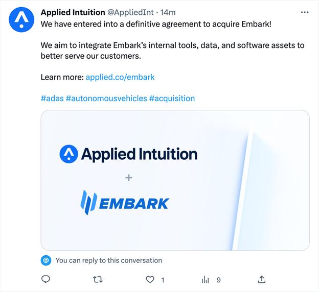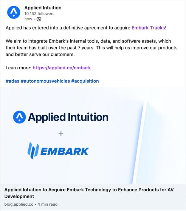 On May 25, 2023, Applied Intuition, Inc. (“Applied”) made the following post on LinkedIn: