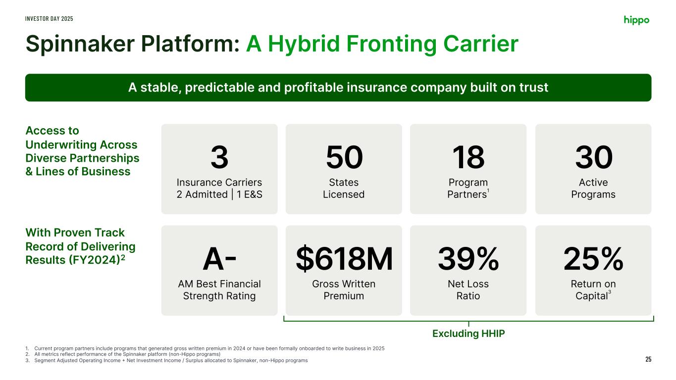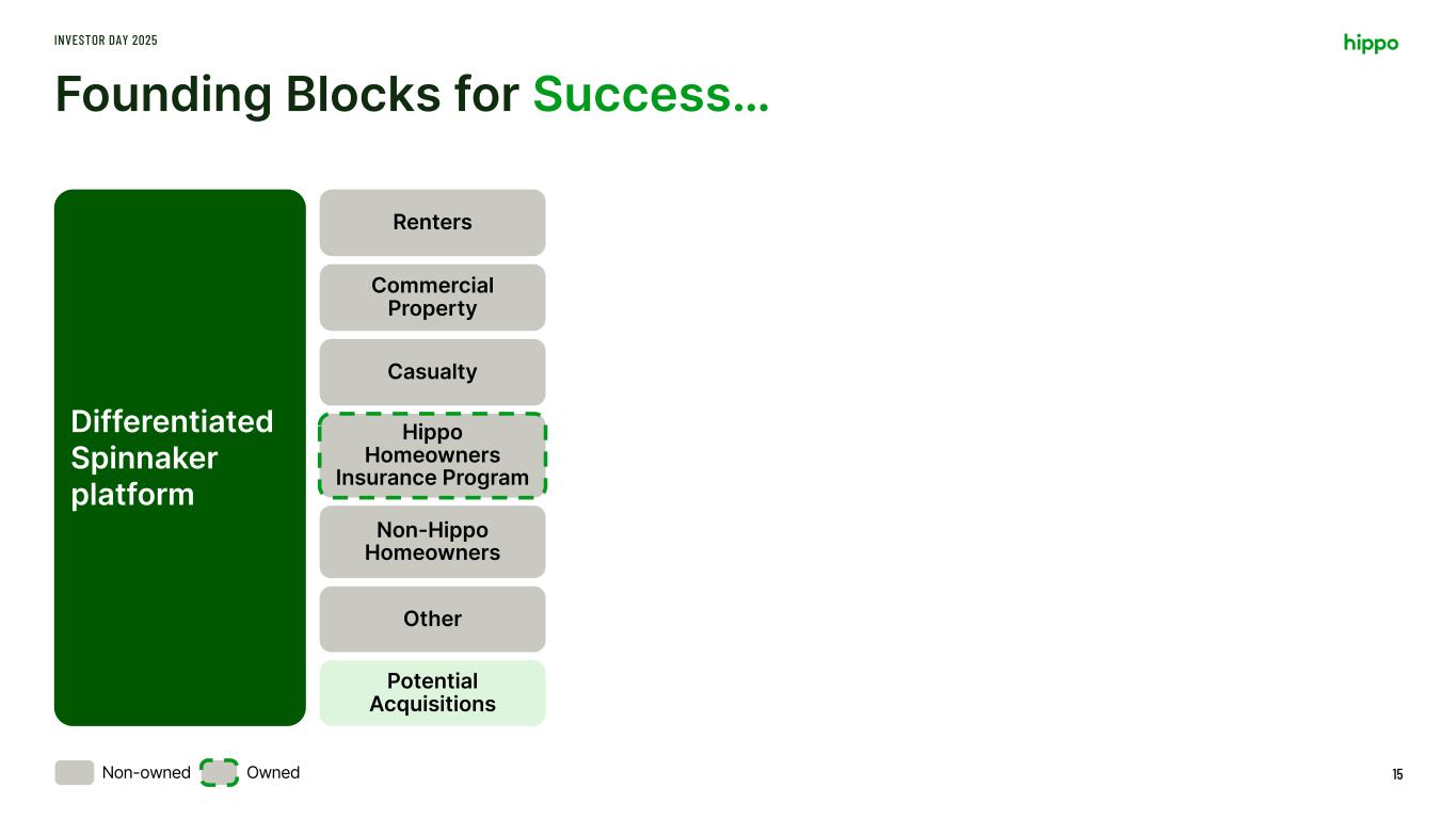 Founding Blocks for Success… INVESTOR DAY 2025 15 Differentiated Spinnaker platform Hippo Homeowners Insurance Program Renters Commercial Property Casualty Non-Hippo Homeowners Other Potential Acquisitions OwnedNon-owned