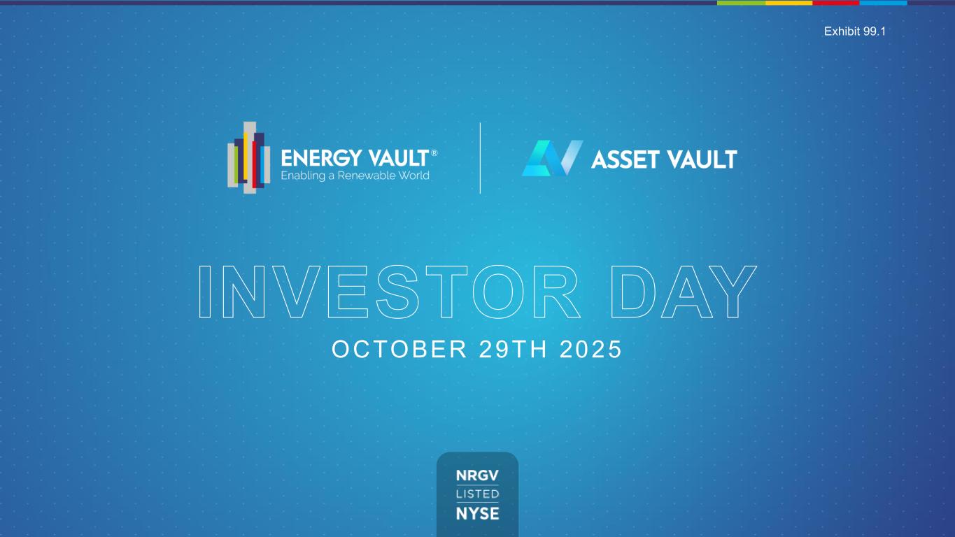 © 2025 ENERGY VAULT, ALL RIGHTS RESERVED | Confidential FOUO (For Officia l Use Only) - PROPRIETARY INFORMATION OF ENERGY VAULT, INC 1 INVESTOR DAY OCTOBER 29TH 2025