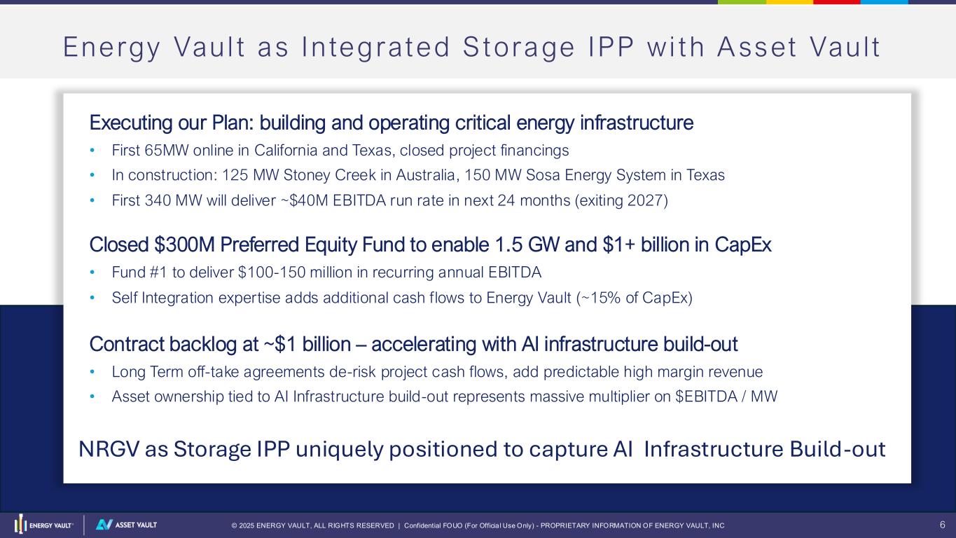© 2025 ENERGY VAULT, ALL RIGHTS RESERVED | Confidential FOUO (For Officia l Use Only) - PROPRIETARY INFORMATION OF ENERGY VAULT, INC 5 INTRODUCING ASSET VAULT R O B E R T P I C O N I