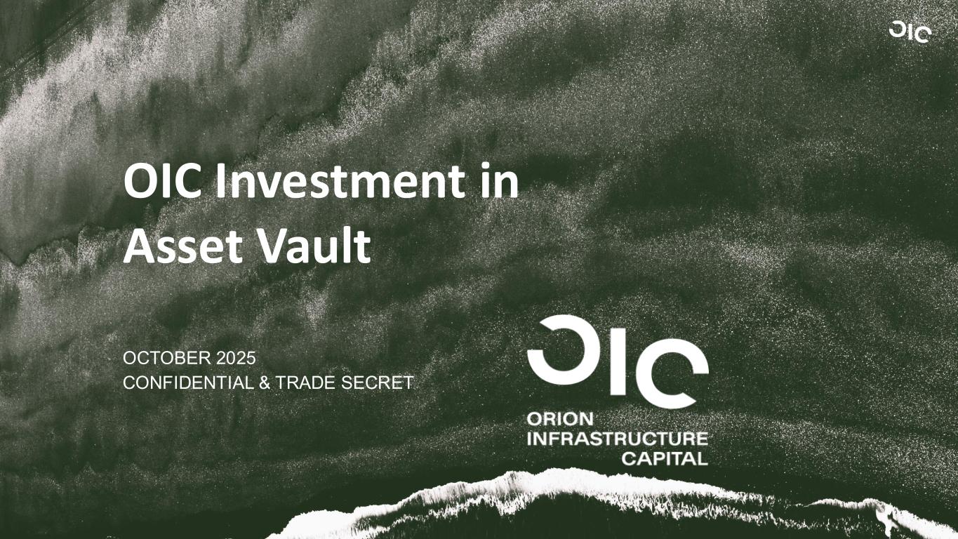 OIC Investment in Asset Vault OCTOBER 2025 CONFIDENTIAL & TRADE SECRET