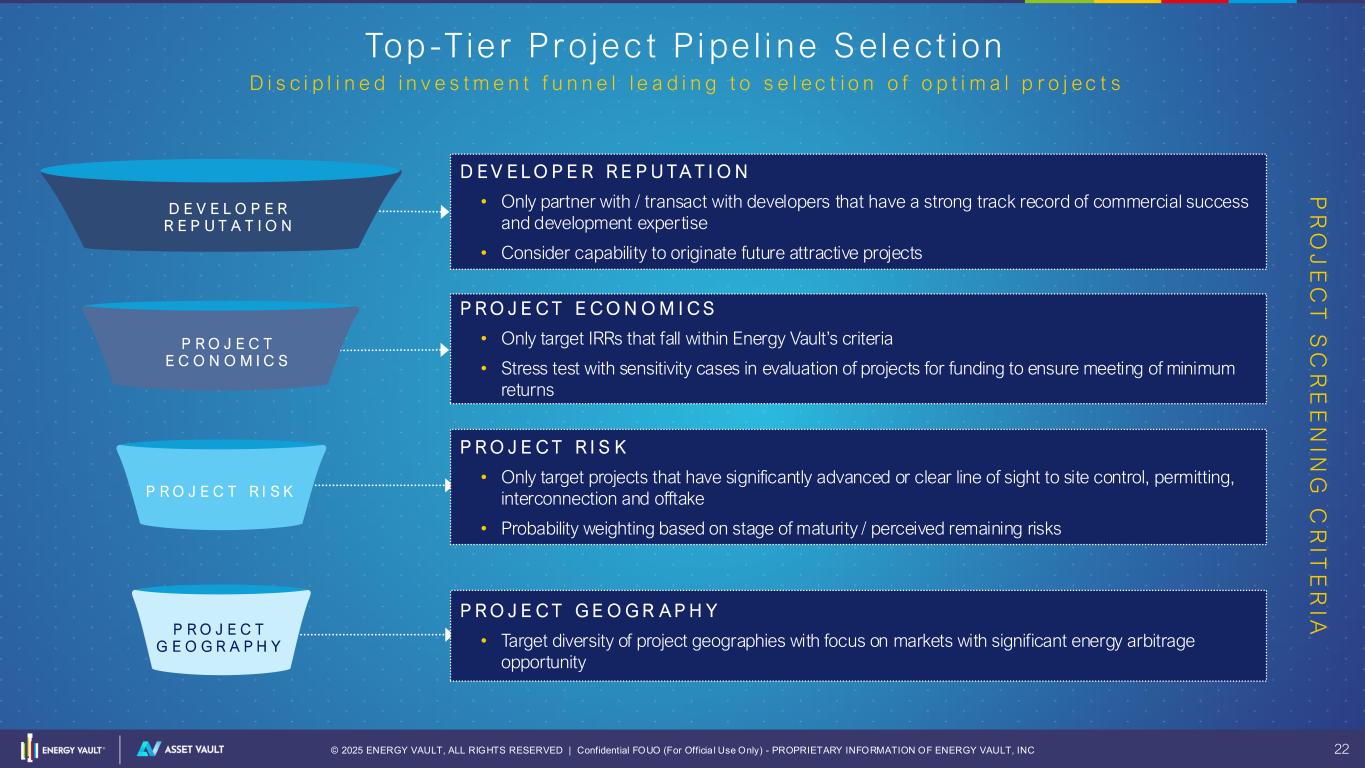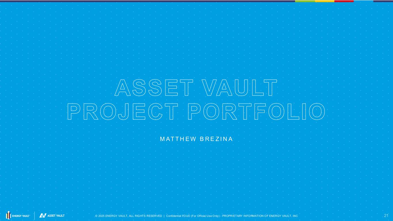 21 © 2025 ENERGY VAULT, ALL RIGHTS RESERVED | Confidential FOUO (For Officia l Use Only) - PROPRIETARY INFORMATION OF ENERGY VAULT, INC 21 ASSET VAULT PROJECT PORTFOLIO M AT T H E W B R E Z I N A