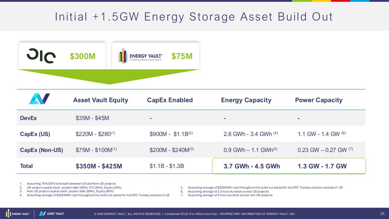 © 2025 ENERGY VAULT, ALL RIGHTS RESERVED | Confidential FOUO (For Officia l Use Only) - PROPRIETARY INFORMATION OF ENERGY VAULT, INC 25 A sset Vau l t Pro jec t Por t fo l io D i v e r s e A c r o s s R e g i o n s a n d D e v e l o p m e n t S t a g e s Operational Contracted Pipeline S t r a t e g i c p a r t n e r s h i p e n a b l e s d e p l o y m e n t o f + 1 . 5 G W e n e r g y s t o r a g e p i p e l i n e a c r o s s h i g h - g r o w t h m a r k e t s i n t h e U . S . , A u s t r a l i a , a n d E u r o p e P r o j e c t s e l e c t i o n f o c u s e s o n h i g h l y p r o f i t a b l e o f f t a k e s i n c l u d i n g t h e e m e r g i n g A I D a t a C e n t e r s e g m e n t