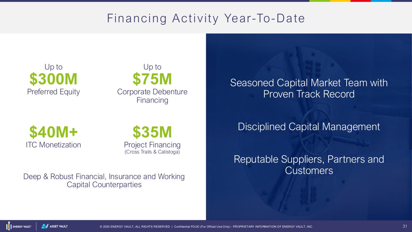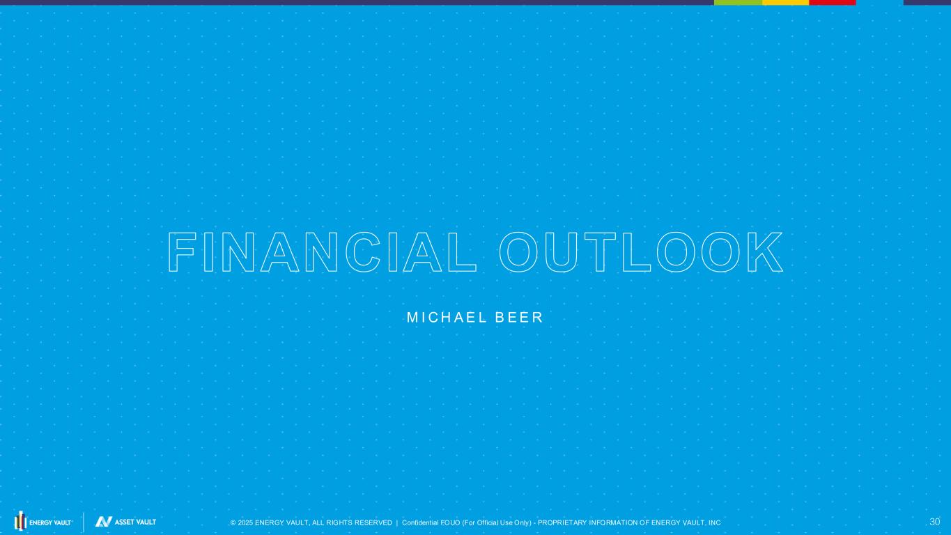© 2025 ENERGY VAULT, ALL RIGHTS RESERVED | Confidential FOUO (For Officia l Use Only) - PROPRIETARY INFORMATION OF ENERGY VAULT, INC 30 FINANCIAL OUTLOOK M I C H A E L B E E R
