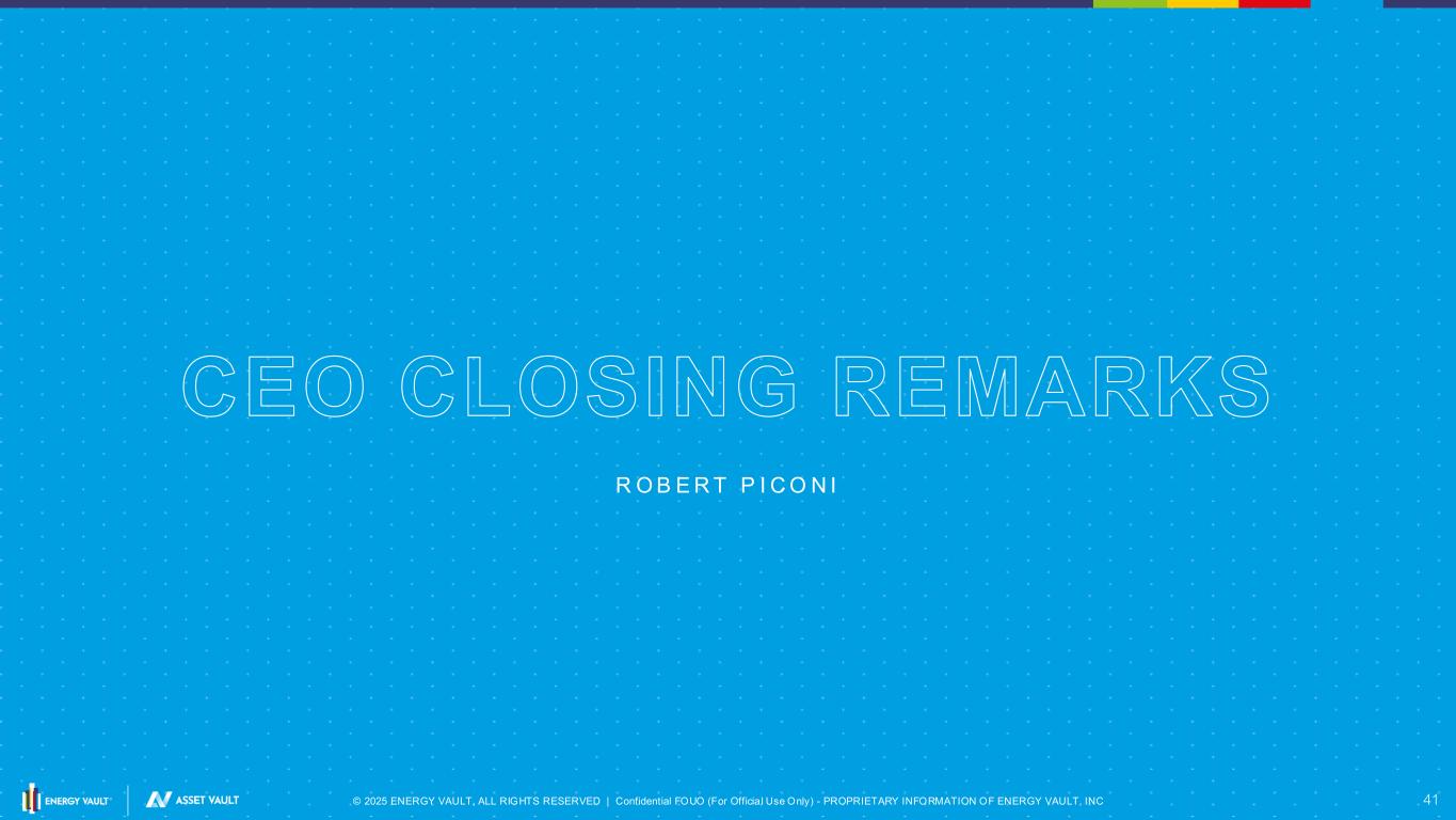 © 2025 ENERGY VAULT, ALL RIGHTS RESERVED | Confidential FOUO (For Officia l Use Only) - PROPRIETARY INFORMATION OF ENERGY VAULT, INC 41 CEO CLOSING REMARKS R O B E R T P I C O N I
