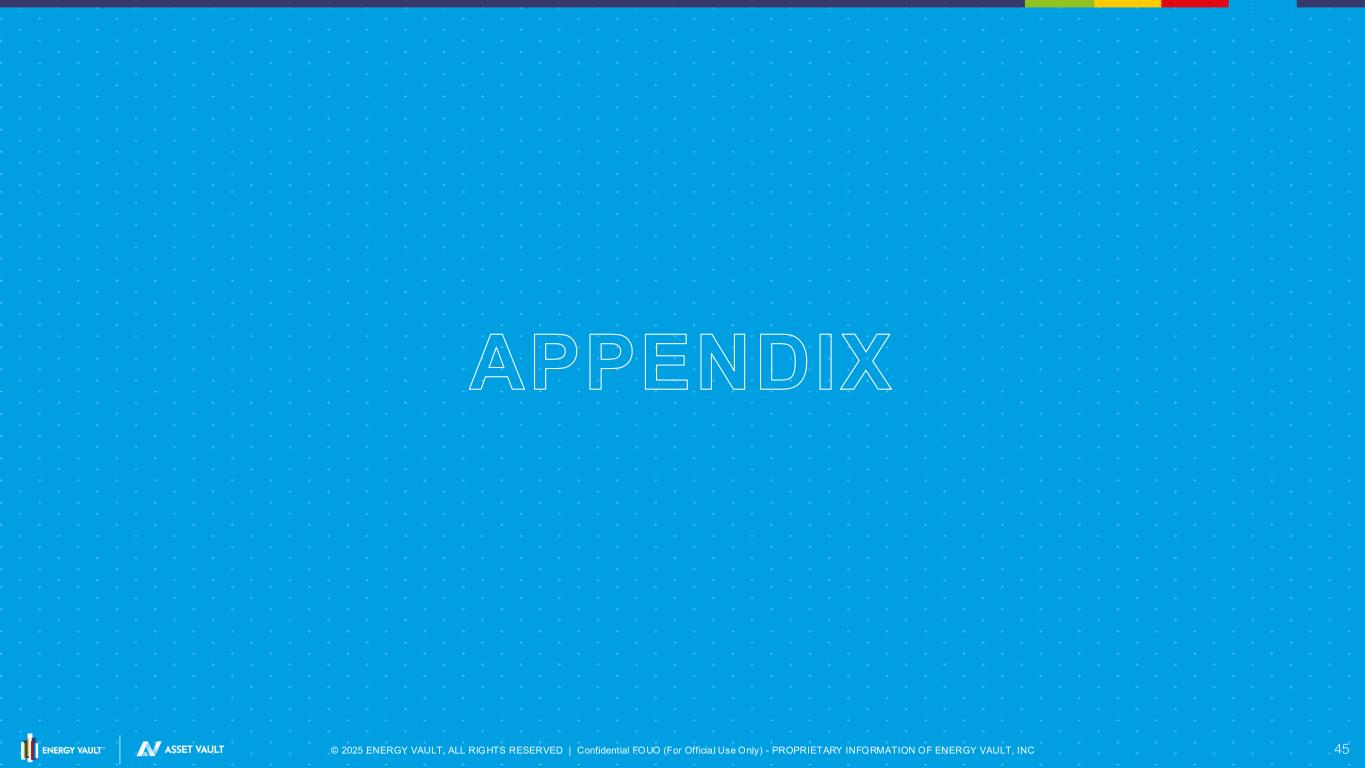 © 2025 ENERGY VAULT, ALL RIGHTS RESERVED | Confidential FOUO (For Officia l Use Only) - PROPRIETARY INFORMATION OF ENERGY VAULT, INC 45 APPENDIX
