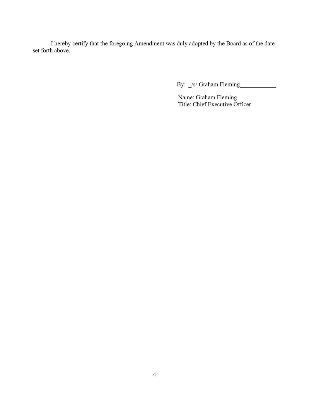 4 I hereby certify that the foregoing Amendment was duly adopted by the Board as of the date set forth above. By: _/s/ Graham Fleming____________ Name: Graham Fleming Title: Chief Executive Officer