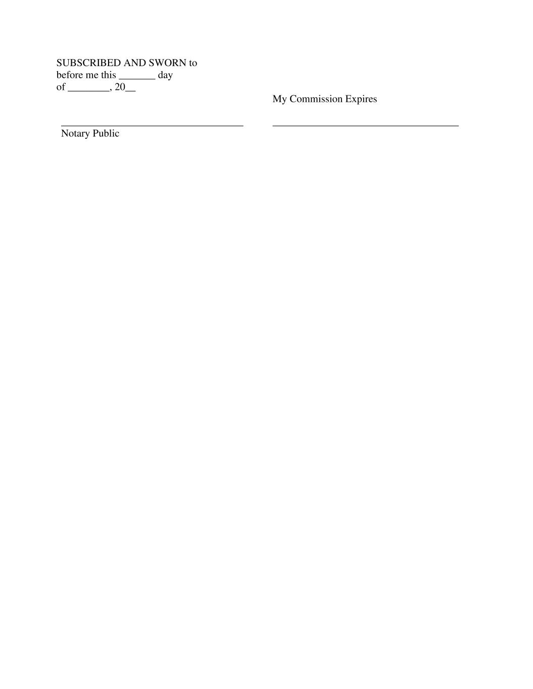 SUBSCRIBED AND SWORN to before me this _______ day of ________, 20__ My Commission Expires Notary Public