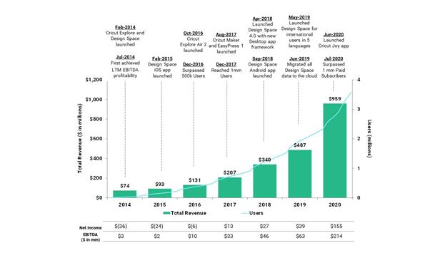 We enable our users to be inspired, create and share projects with the Cricut community and to follow others doing the same. Our community of users has scaled significantly over time, and our number of users grew by 50% from December 31, 2018 to December 31, 2019 and 71% from December 31, 2019 to December 31, 2020.