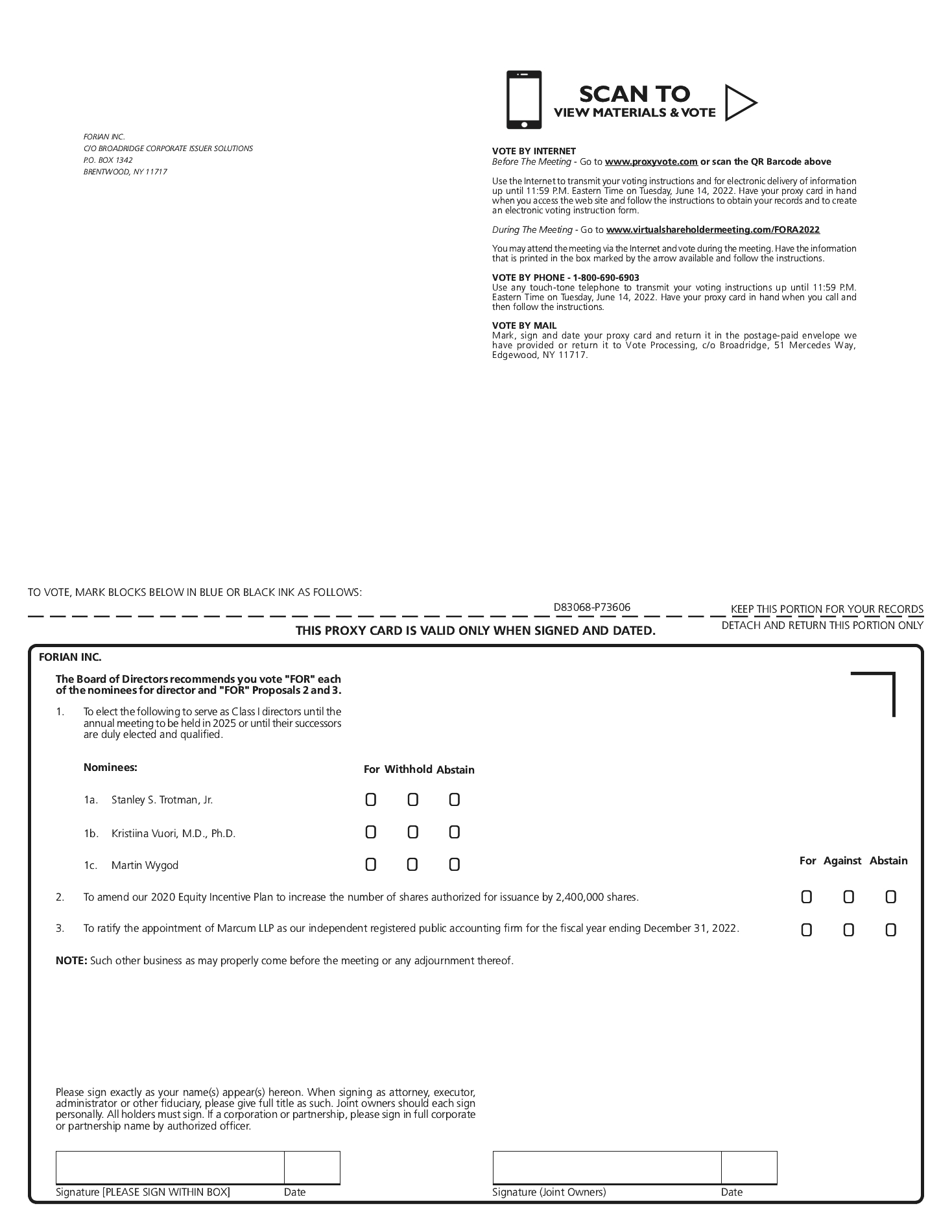 Adam Dublin, Chief Strategy Officer, was previously a consultant for a current vendor of Forian. Mr. Dublin’s consultancy with the vendor ended on December 11, 2020 and the parties have not agreed to renew the agreement. Pursuant to Mr. Dublin’s consulting agreement with the vendor, Mr. Dublin received payments from the vendor for the years ended December 31, 2021 and 2020 of $419,736 and $302,000, respectively.