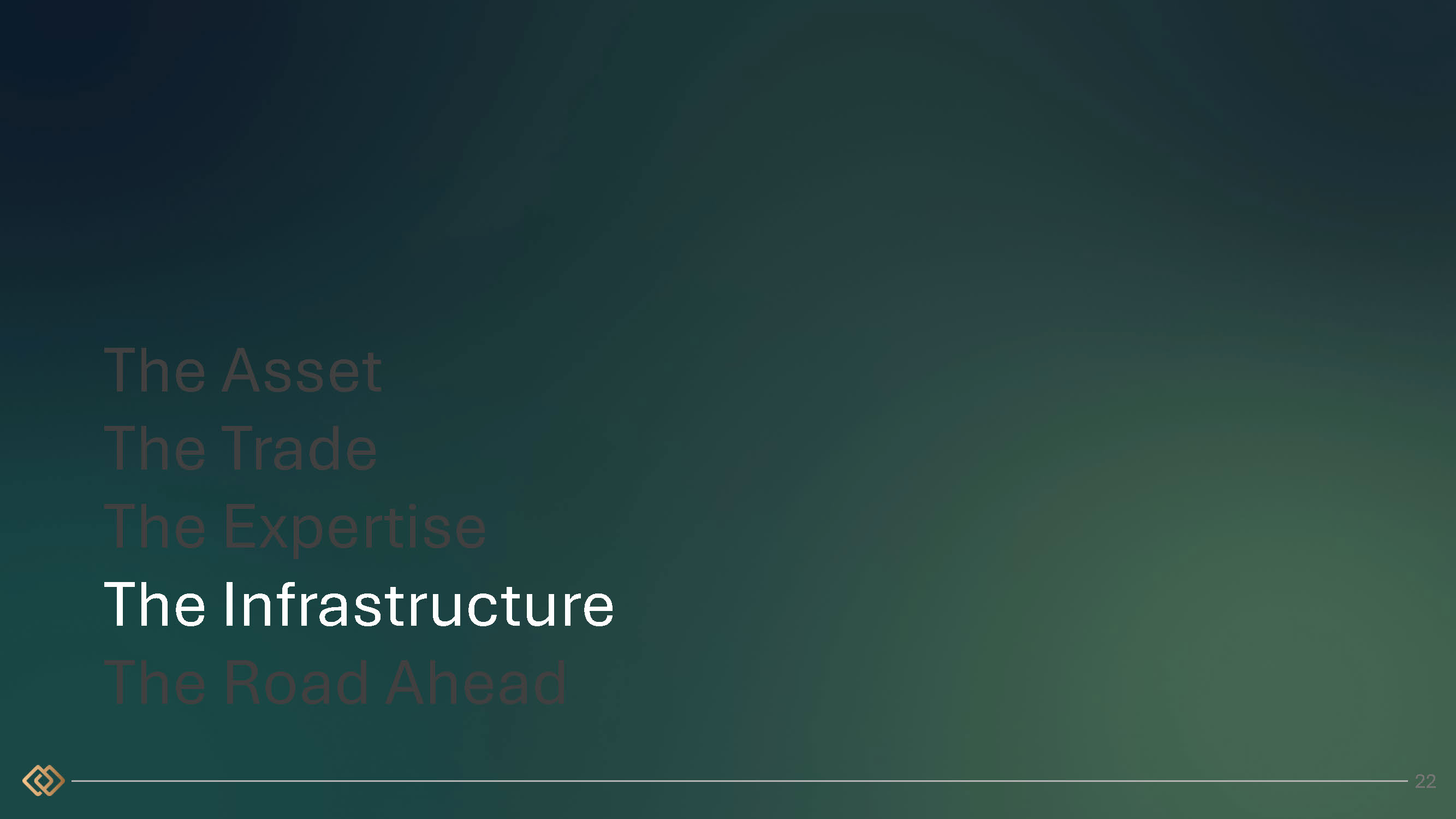 The Asset The Trade The Expertise The Infrastructure The Road Ahead 22
