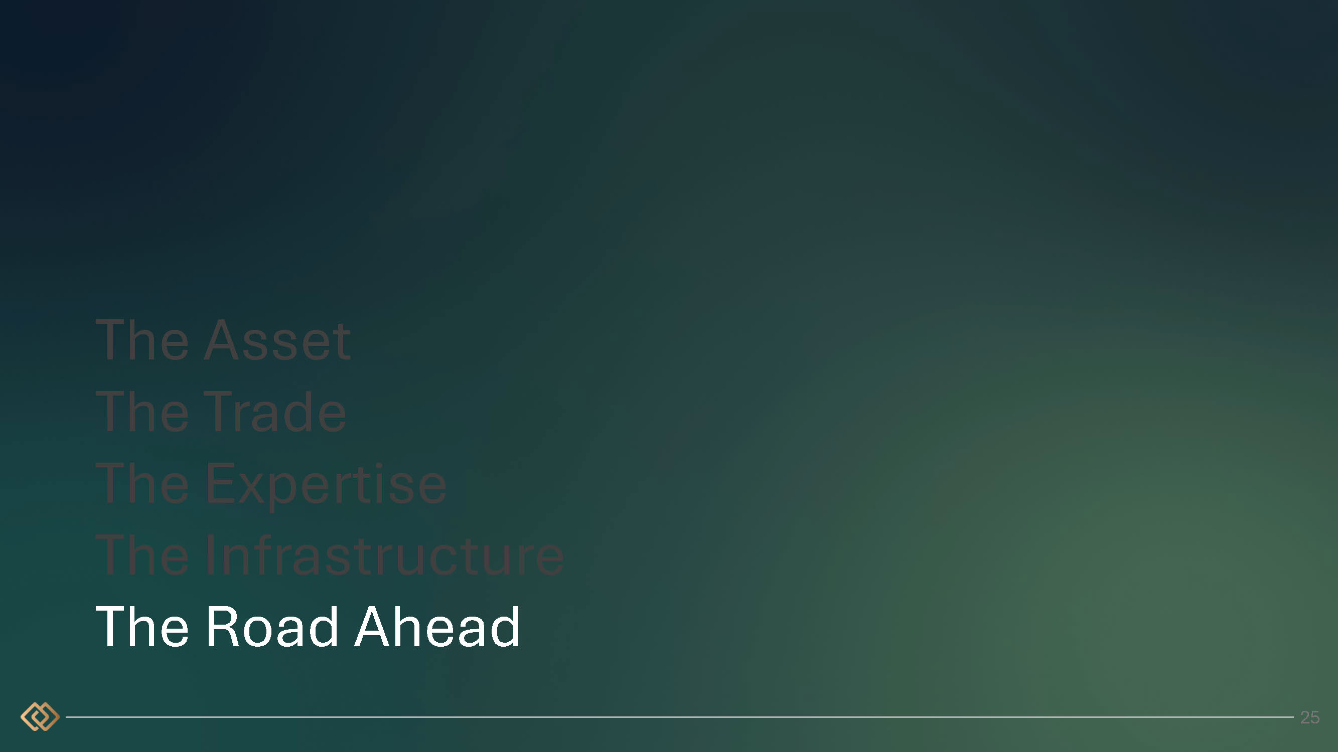 The Asset The Trade The Expertise The Infrastructure The Road Ahead 25