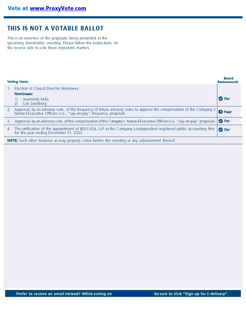 Meeting. This is an important notice regarding the  availability of proxy materials for the shareholder meeting to be held on May 4, 2023.  Get informed before you vote  View the Notice & Proxy Statement and Form 10-K online OR you can