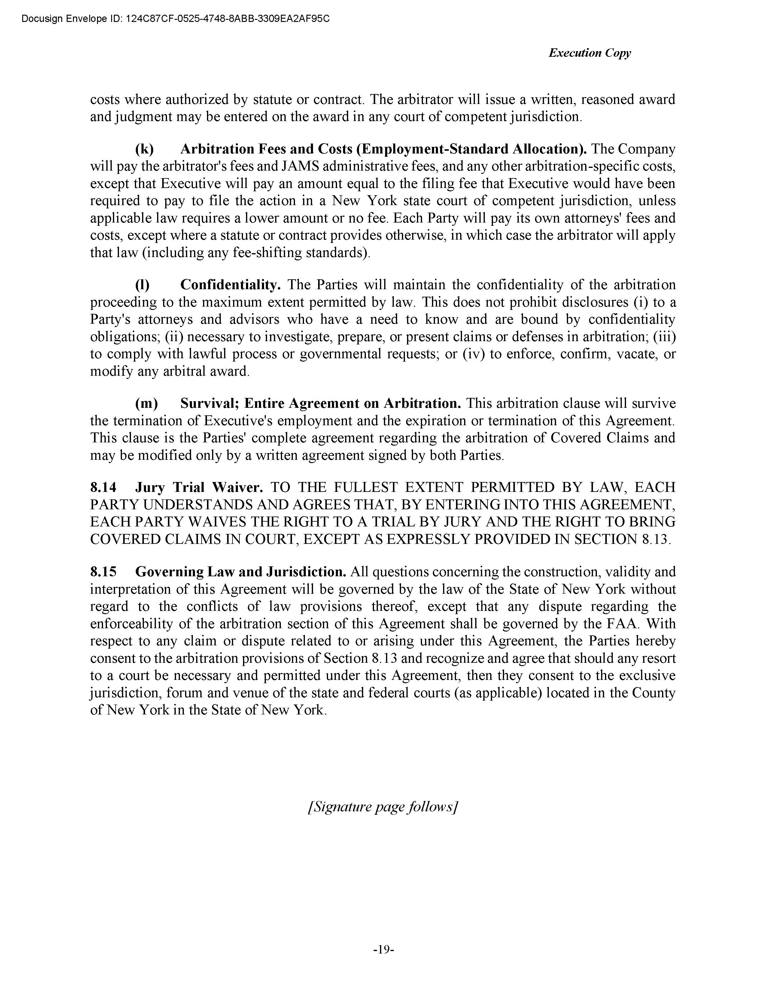 The Employment Agreement includes restrictive covenants and related enforcement provisions, including confidentiality obligations, a one-year non-competition covenant, and other post-termination restrictions, in each case as set forth in the Employment Agreement.