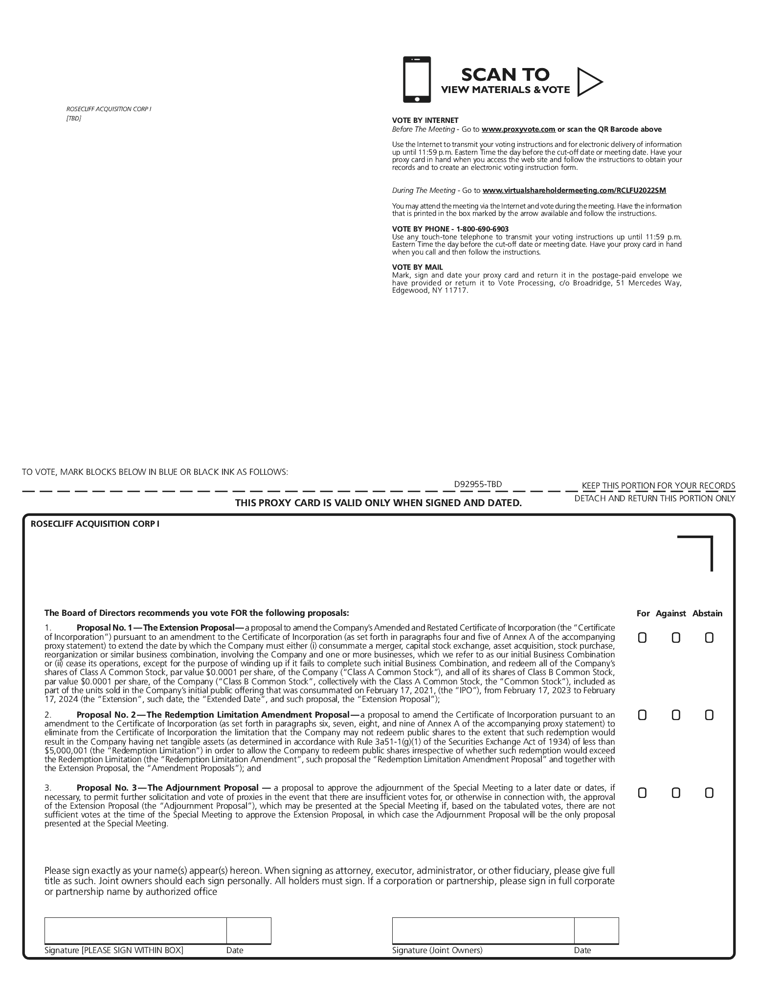 This Notice of the Special Meeting and Proxy Statement, our Annual Report on Form 10-K for the year ended December 31, 2021, as filed with the Securities and Exchange Commission (the “SEC”) on March 31, 2022 (our “Annual Report”), and our Quarterly Reports on Form 10-Q for the periods ended June 30, 2022 and September 30, 2022, are available at https://rosecliffspac.com/sec-filings/.