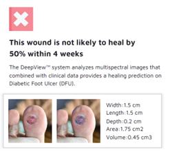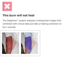 The MSI imaging technology, which comprises one part of the DeepView System, consists of patented proprietary multi-spectral optics and sensors, capturing injured tissue images ranging from near UV lights, through the human visible wavelengths, all the way into the near infrared range (NIR). The broad wavelength ranges go beyond what the human eyes can see and capture what medical professionals cannot observe with their naked eyes. This wide range of wavelength images contains wound tissue physiology and captures the viability of various biomarkers within the skin and from the injured tissue spectral signatures. The imaging technology extracts appropriate clinical data, processes the image data to provide the injured tissue spectral signatures to the AI model and algorithms. The AI algorithm classifies various severities of the injuries as (i) full damaged (non-healing), (ii) partially damaged or (iii) healthy tissue (healing) and displays a comparison of the original image next to an image with a color overlay of the non-healing portions of the wound. The image acquisition takes 0.2 seconds, and all image processing and AI model classification takes approximately 20 to 25 seconds. Our DeepView System’s proprietary optics can extract millions of pixels of data or AI model features from each group of raw images. This information is then used to build and continually improve the AI model, which is trained and tested against a proprietary and clinically validated database of approximately 340 billion pixels of DFU and burn data as of December 31, 2023. The DeepView-AI Burns® software is used with the DeepView SnapShot® imaging device, and it is intended to be used as an adjunctive tool to aid health care providers in the assessment of burn wound healing potential by differentiating non-healing from healing burned tissue within an image.