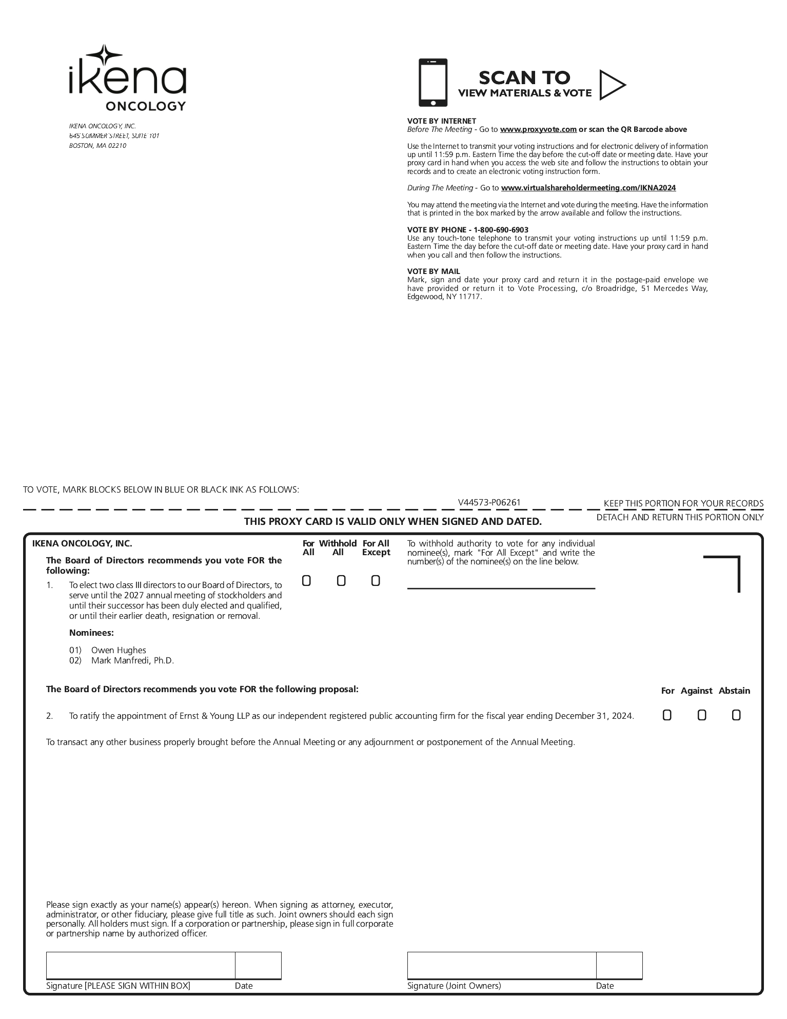 • | During the Annual Meeting. You may vote during the Annual Meeting by going to www.virtualshareholdermeeting.com/IKNA2024. You will need the control number included on your proxy card. |