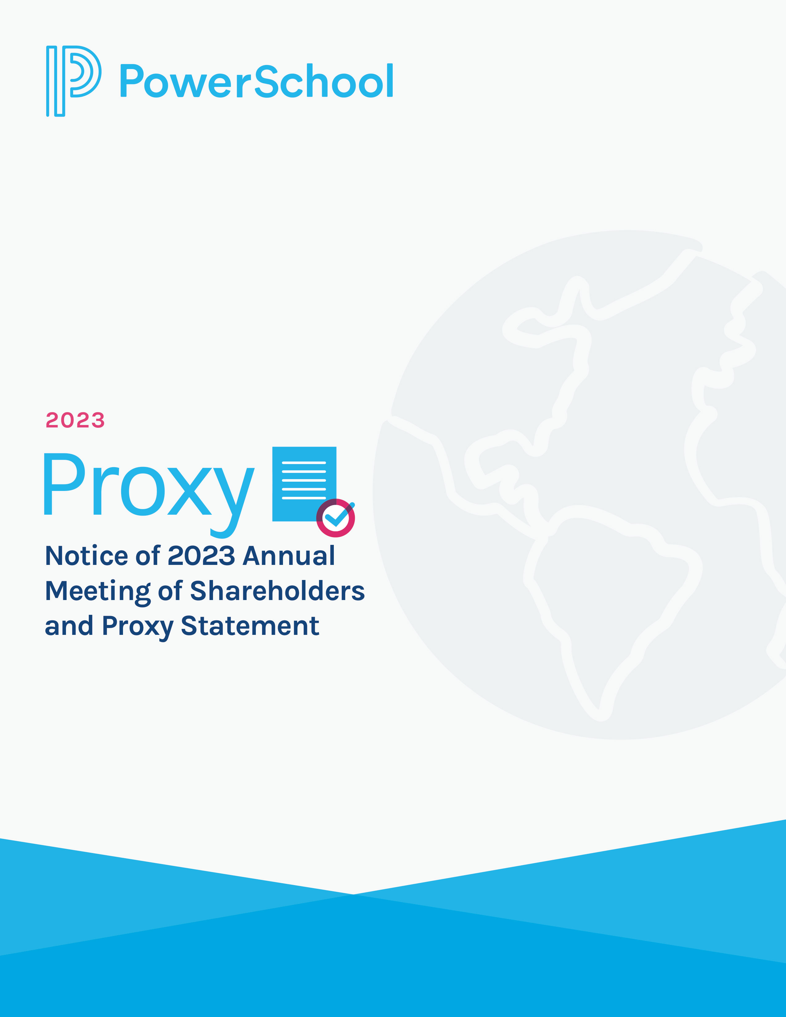 We are pleased to invite you to attend the Annual Meeting of Shareholders of PowerSchool Holdings, Inc. (“PowerSchool” or the “Company”) to be held on Tuesday, May 2, 2023, at 12:00 p.m. Pacific Daylight Time (the “Annual Meeting”). This year’s Annual Meeting will be conducted virtually, via live audio webcast. The virtual meeting will allow for greater participation by all of our shareholders, regardless of their geographic location. You will be able to attend the meeting online by visiting www.virtualshareholdermeeting.com/PWSC2023. You will be able to submit questions and vote your shares electronically during the meeting by logging in using the 16-digit control number included on your proxy card or on the voting instruction form accompanying these proxy materials.